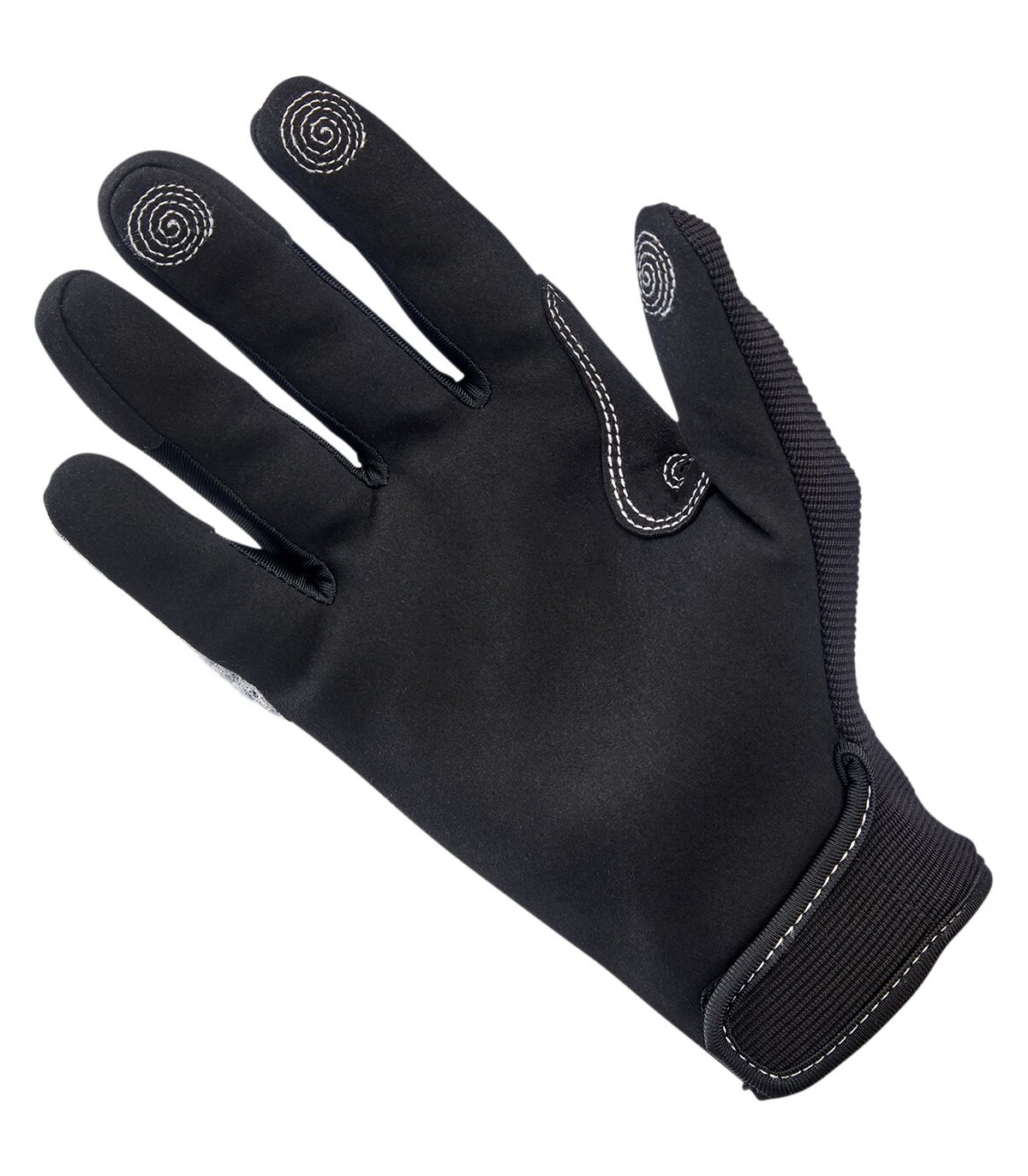 Anza GlovesSynthetic suede palm features two-way stretch for a snug, comfortable fitThree-ply, one-piece vented polyester back and thumb construction for maximum airflowFlexible thermoplastic rubber knuckle guards and shield logoLycra® expansion panels in finger joints for dexterityRugged Single- and double-needle polyester stitchingThermoplastic rubber knuckle guards on the back of the glove provide protection from rocky roost and airborne road debrisA double-stitched reinforcement panel on the thumb and index finger adds strength to the friction zone between your hands and the gripsConductive stitching in fingers and thumb lets you operate smart screens