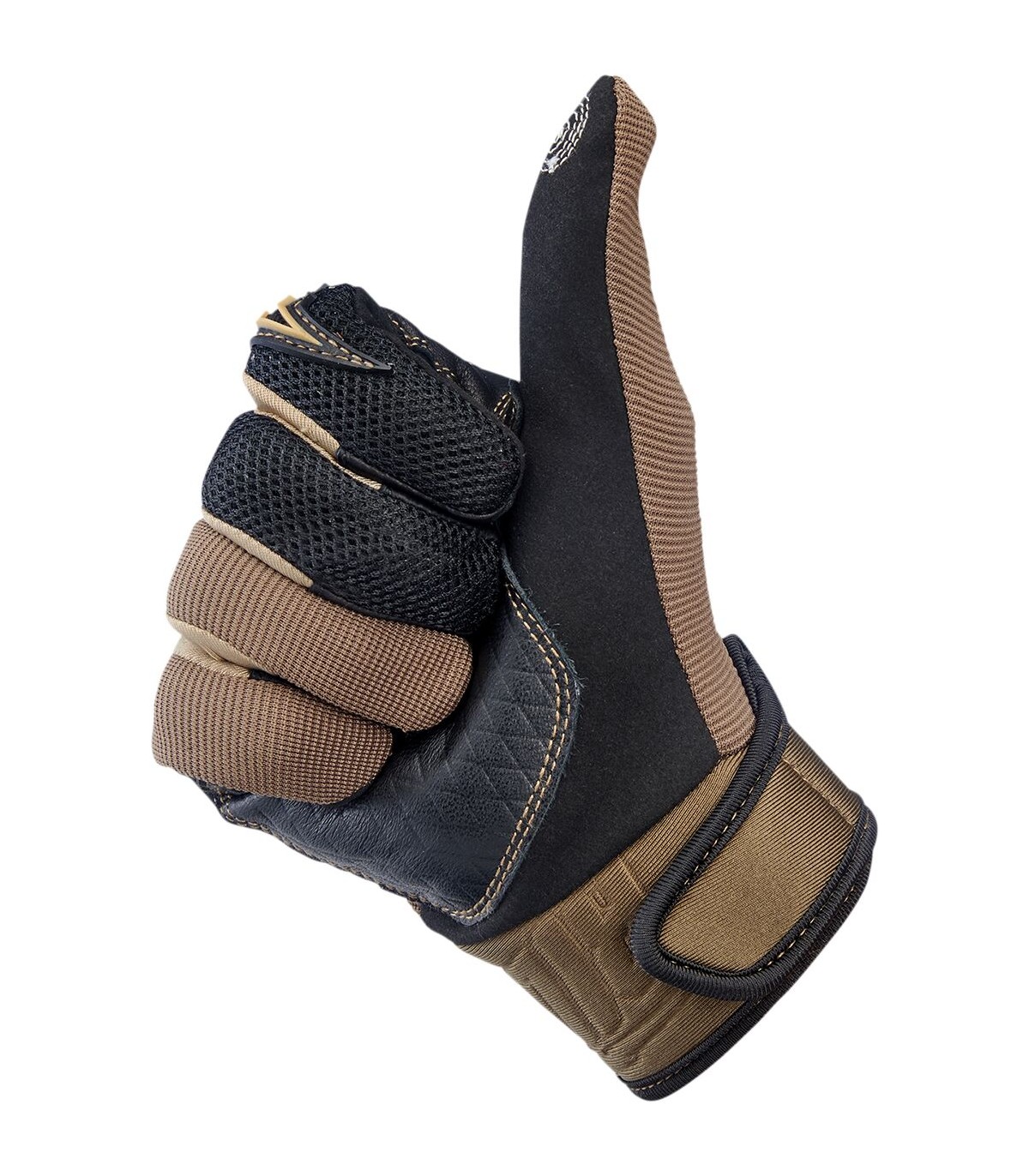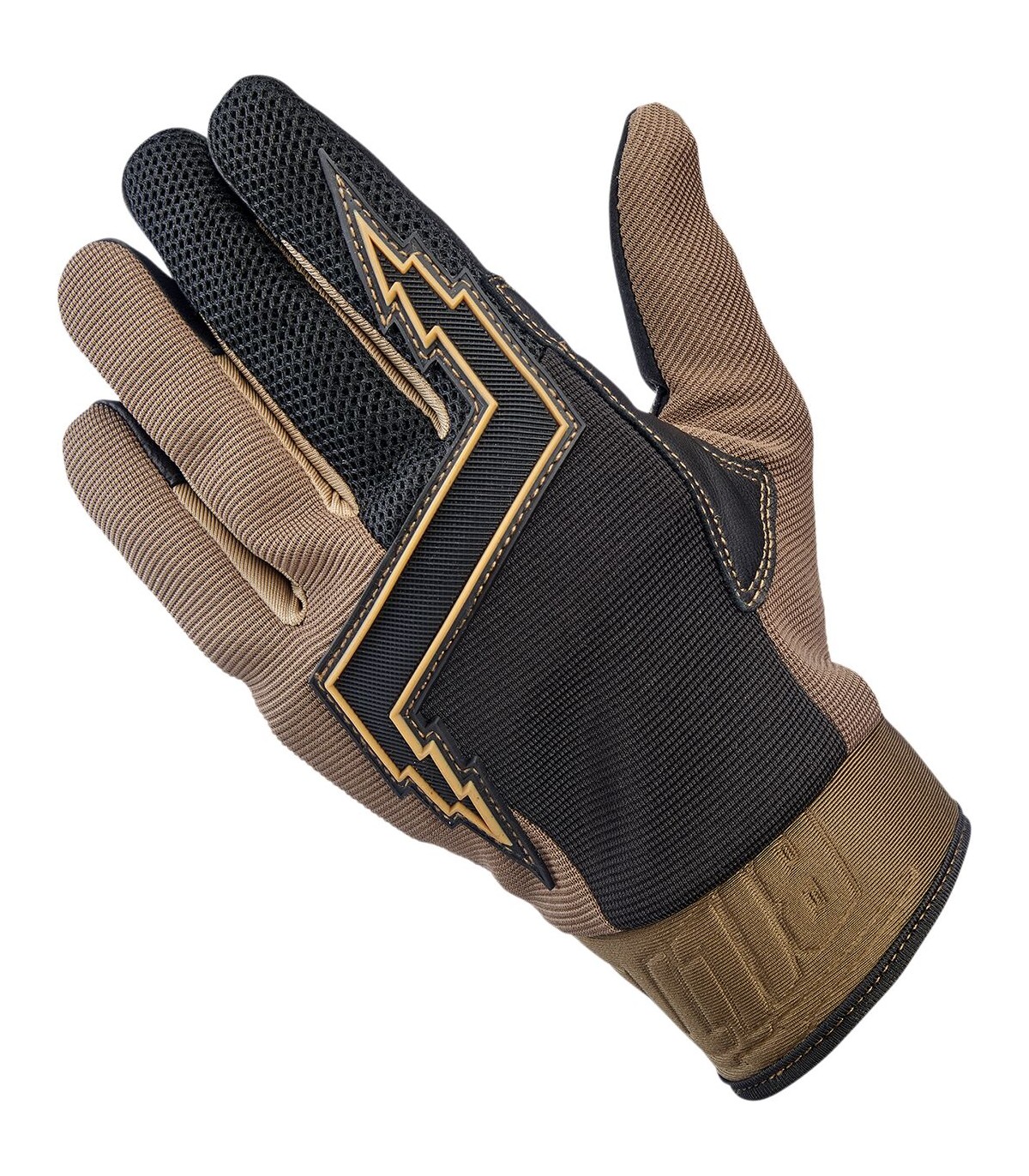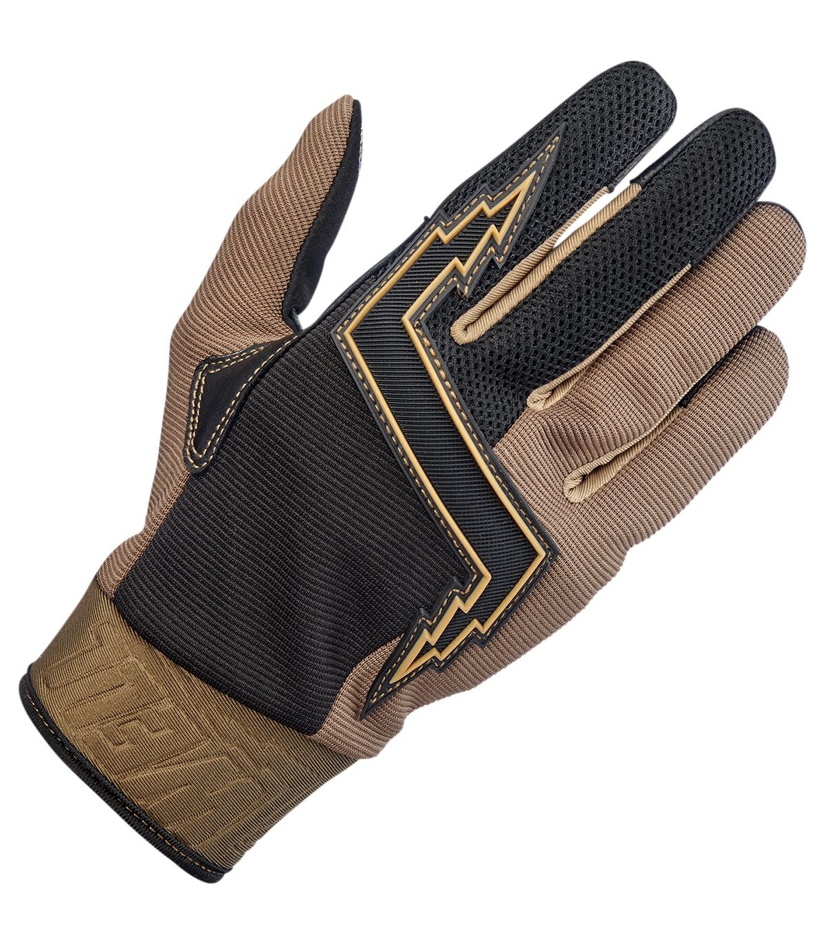 Baja GlovesDesign inspired by the 1980’s Golden Age of motocrossGoat leather palm and thumb reinforcement for added toughness in high friction areas with durable goatskin on fingertipsSynthetic suede palm and thumb construction for a snug, comfortable fitStretch polyester construction on ring and pinkie fingers for maximum flexibilityThree-ply woven mesh back panel for ventilationMolded two-ply neoprene wrist wrap with adjustable Velcro closureLycra® expansion panels in finger joints for added dexterityRugged single- and double-needle polyester stitching throughoutThermoplastic rubber lightning bolt knuckle protector5mm thick hidden neoprene knuckle guardConductive stitching in fingers and thumb lets you operate smart screen