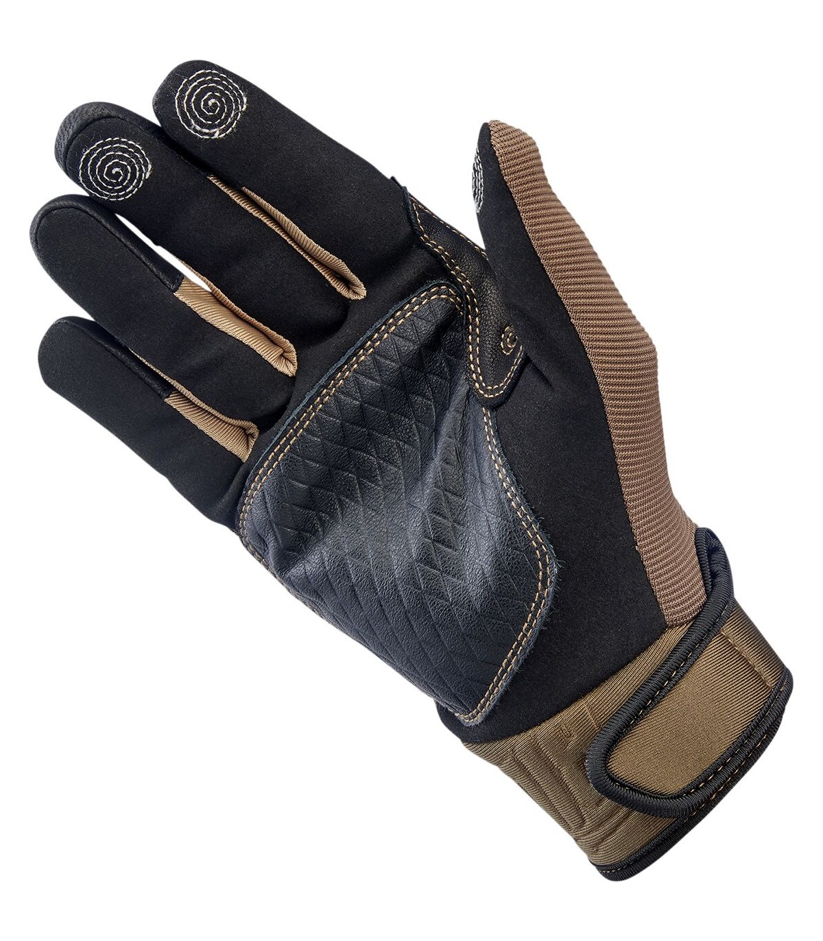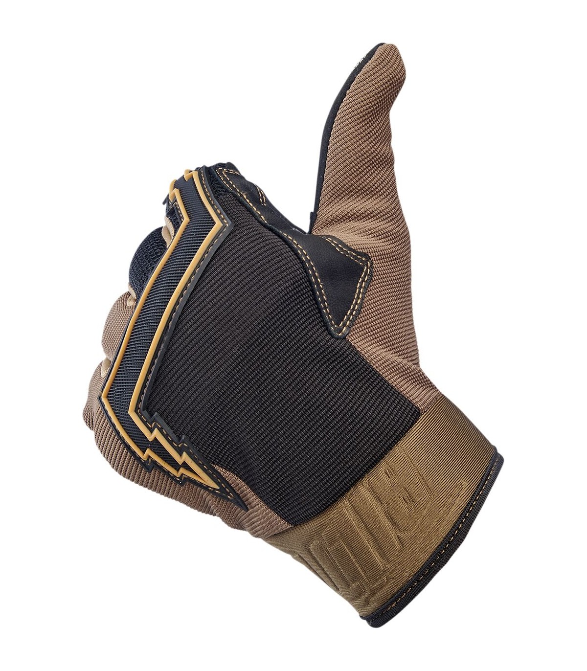 Baja GlovesDesign inspired by the 1980’s Golden Age of motocrossGoat leather palm and thumb reinforcement for added toughness in high friction areas with durable goatskin on fingertipsSynthetic suede palm and thumb construction for a snug, comfortable fitStretch polyester construction on ring and pinkie fingers for maximum flexibilityThree-ply woven mesh back panel for ventilationMolded two-ply neoprene wrist wrap with adjustable Velcro closureLycra® expansion panels in finger joints for added dexterityRugged single- and double-needle polyester stitching throughoutThermoplastic rubber lightning bolt knuckle protector5mm thick hidden neoprene knuckle guardConductive stitching in fingers and thumb lets you operate smart screen