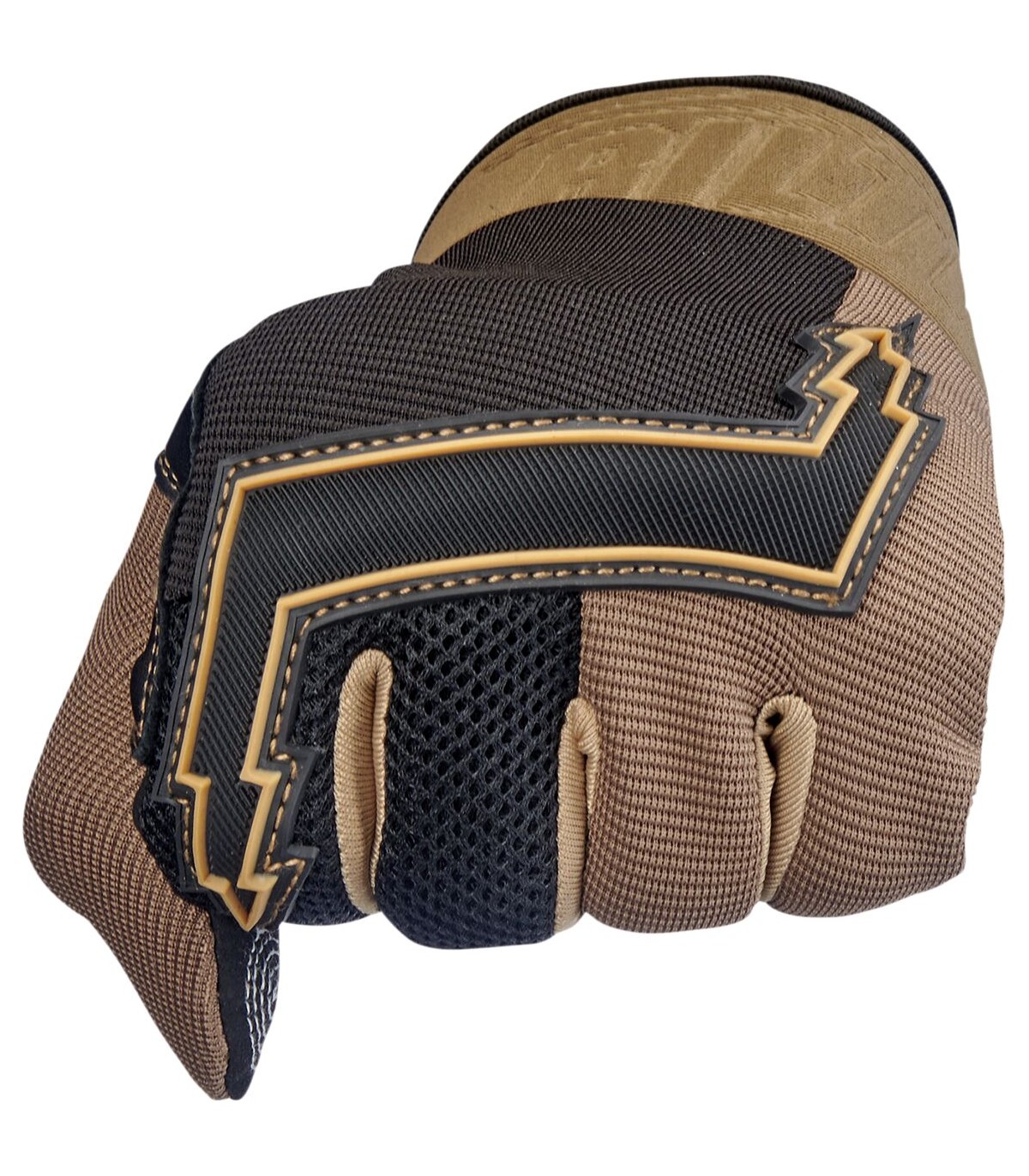 Baja GlovesDesign inspired by the 1980’s Golden Age of motocrossGoat leather palm and thumb reinforcement for added toughness in high friction areas with durable goatskin on fingertipsSynthetic suede palm and thumb construction for a snug, comfortable fitStretch polyester construction on ring and pinkie fingers for maximum flexibilityThree-ply woven mesh back panel for ventilationMolded two-ply neoprene wrist wrap with adjustable Velcro closureLycra® expansion panels in finger joints for added dexterityRugged single- and double-needle polyester stitching throughoutThermoplastic rubber lightning bolt knuckle protector5mm thick hidden neoprene knuckle guardConductive stitching in fingers and thumb lets you operate smart screen