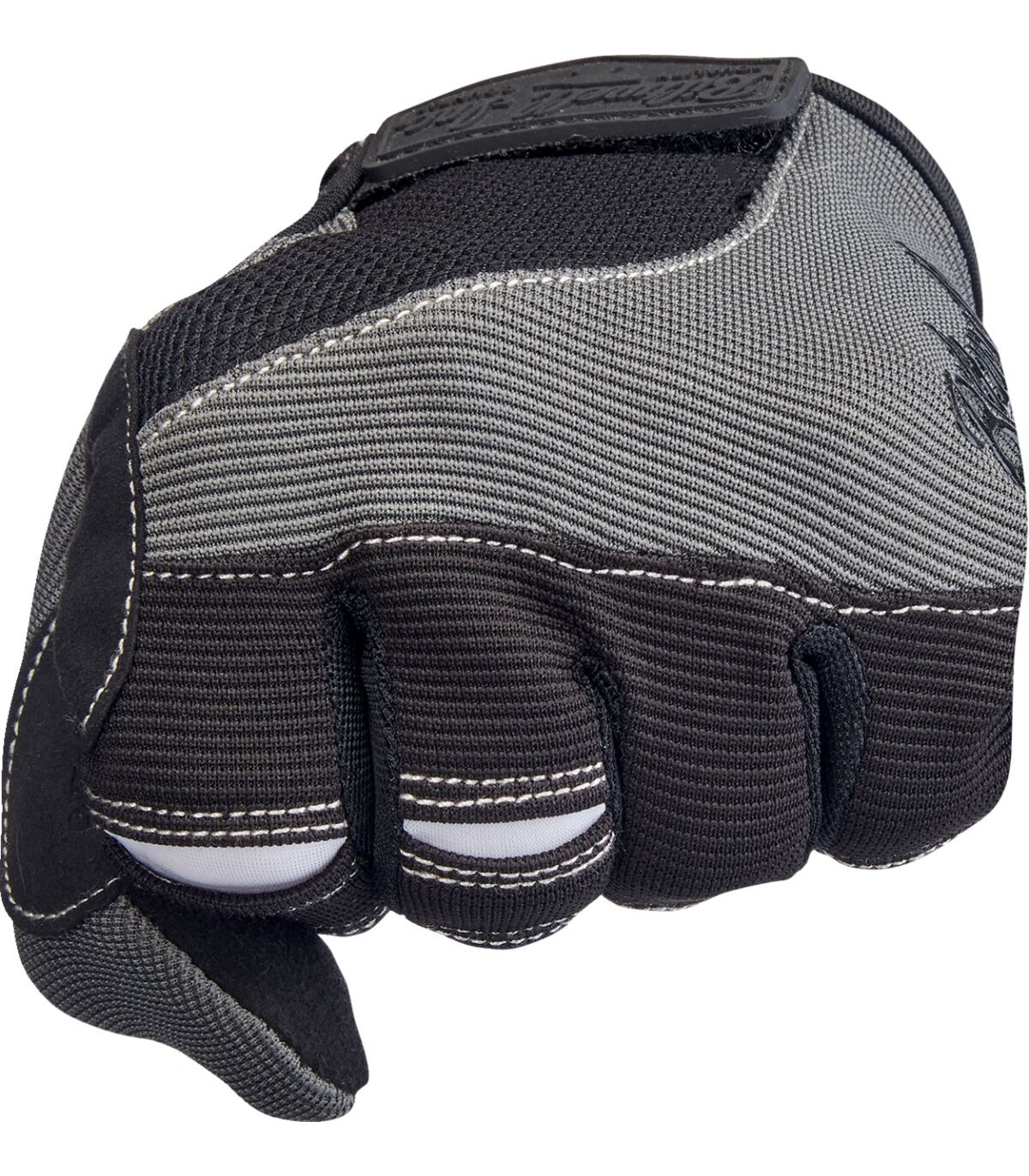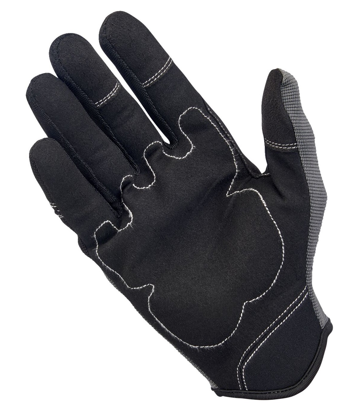 Moto GlovesTwo-way stretch polyester back panels for comfortSingle layer synthetic leather palm with reinforced thumbAdjustable wrist wrap with velcro closure and thermoplastic rubber Biltwell shieldLycra expansion panels in finger joints for enhanced dexterityAccordion baffles on finger joints for added flexibilityRugged single- and double-needle polyester stitching