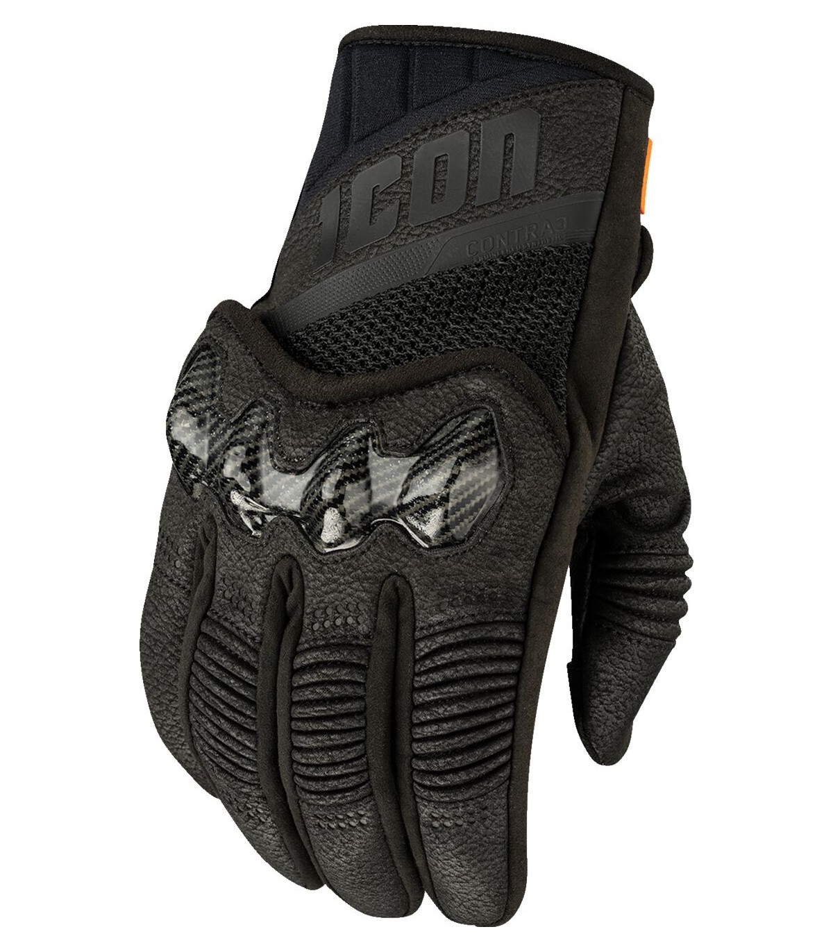 Contra3™ CE GlovesAx® Laredo engineered synthetic with Iron weave mesh backhand chassis, Ax® Laredo reinforced palmFloating knuckle with carbon look plate and D3O® foam paddingDebossed neoprene cuffPolyester mesh backhand for increased airflow