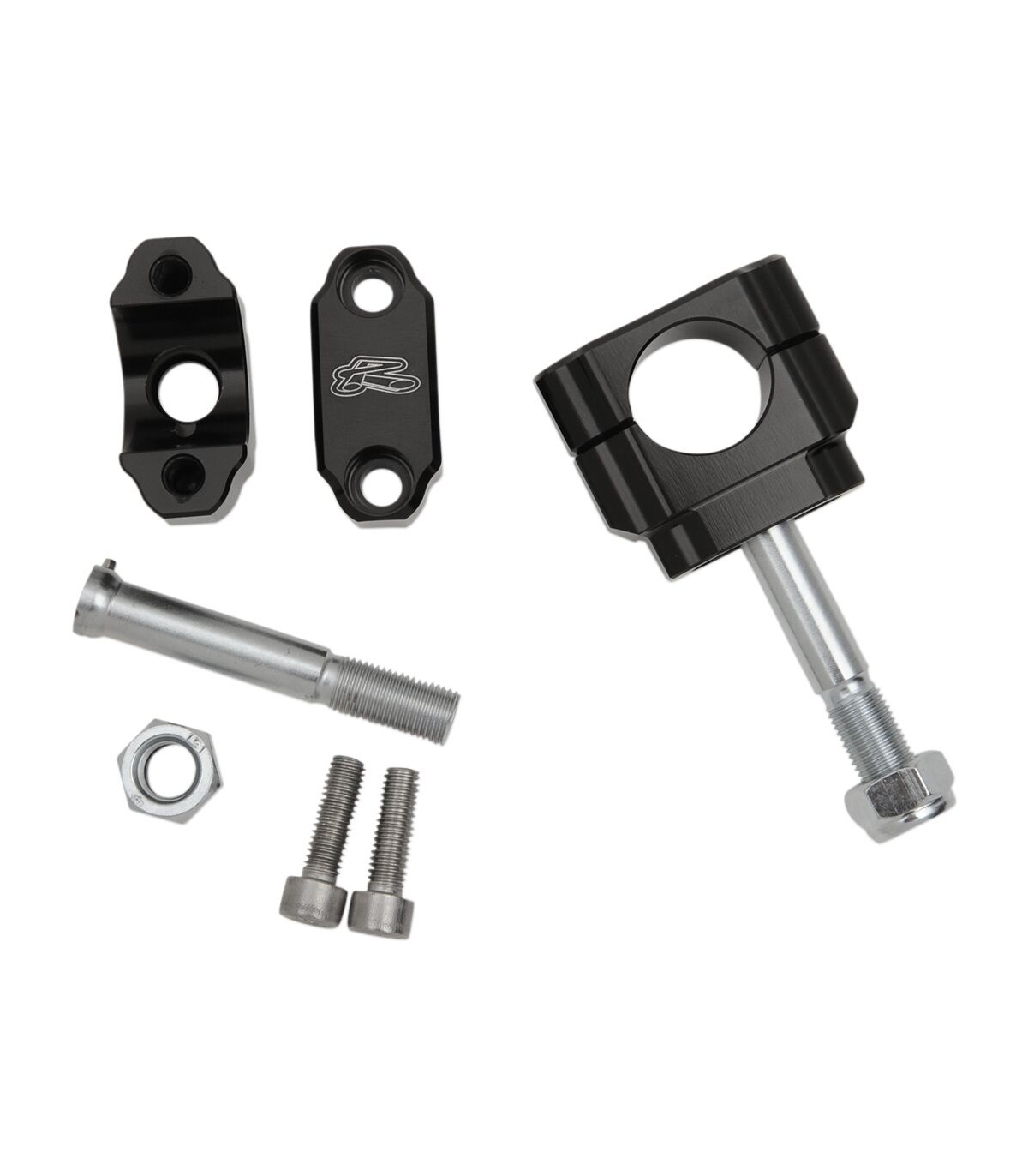 Kit de fixation de guidon à monter sur silent-block en caoutchoucConçus pour permettre de monter des guidons surdimensionnés de 1-1/8" sur certains modèles de motos dotés de guidons standard de 7/8"Usinés CNC à base d’aluminium 6086-T6 et goujons en acier chromé et nickel durciUtilisent les cônes en caoutchouc d’origine ; non inclus