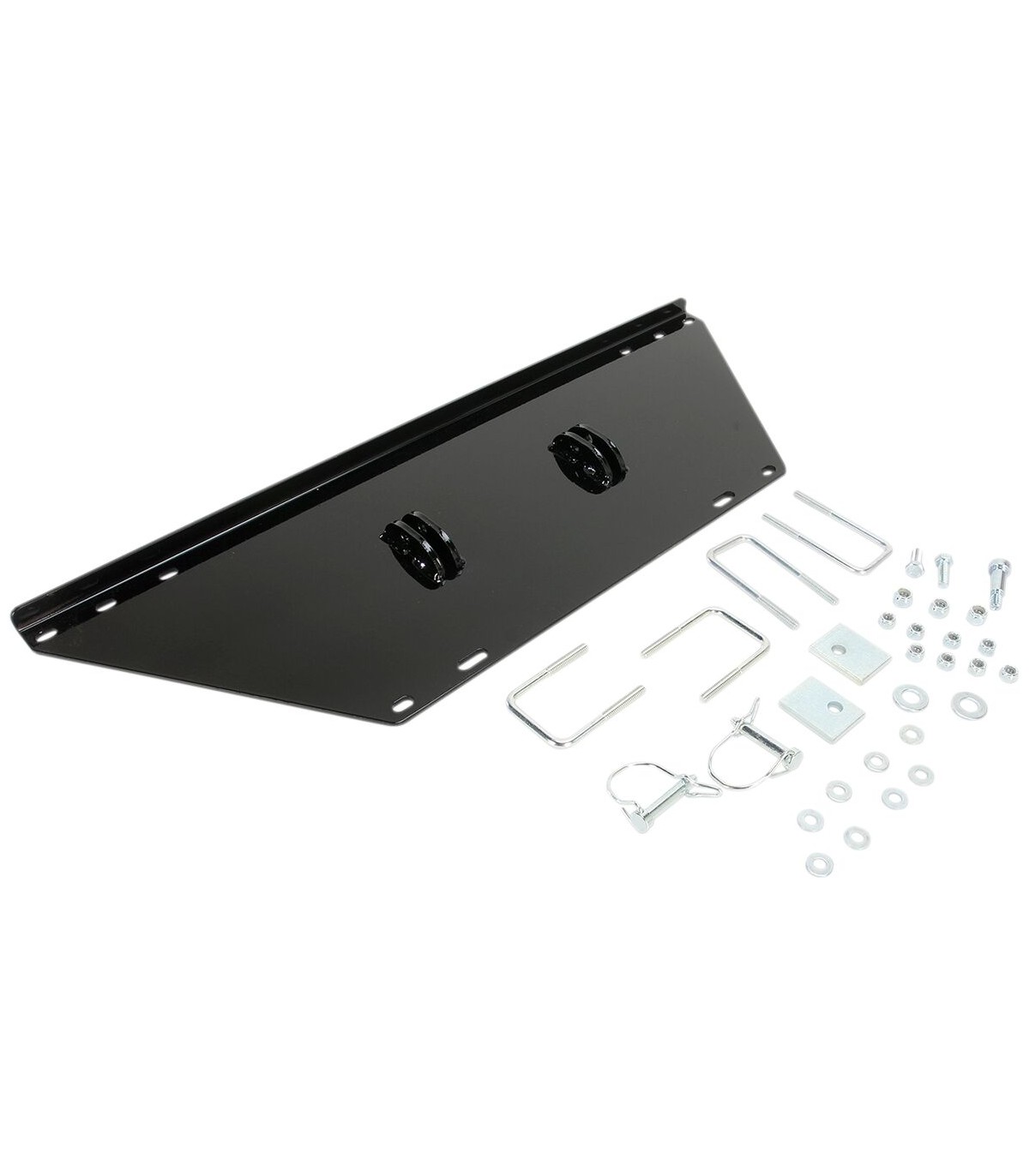 Kit de montage de lameKit de montage rapide pour une installation et un retrait facilesLa barre de poussée renforcée universelle résiste aux utilisations les plus rudesL’articulation de la lame est fabriquée en acier de 3/8" avec des points de fixations de lame de 20" pour un meilleur soutien et une meilleure résistance de la lameL’articulation ouverte élimine l’accumulation de saletés et de neige dans le point de pivotCinq positions de lame et 4 angles d’inclinaison de la lame ajustablesLe kit de fixation inférieure de pelle pour quad comprend le matériel de montage nécessaire pour monter un bras de poussée et une lame universels sur votre quad.Les kits de platine de treuil sont compatibles avec les treuils WARN, Moose et Superwinch