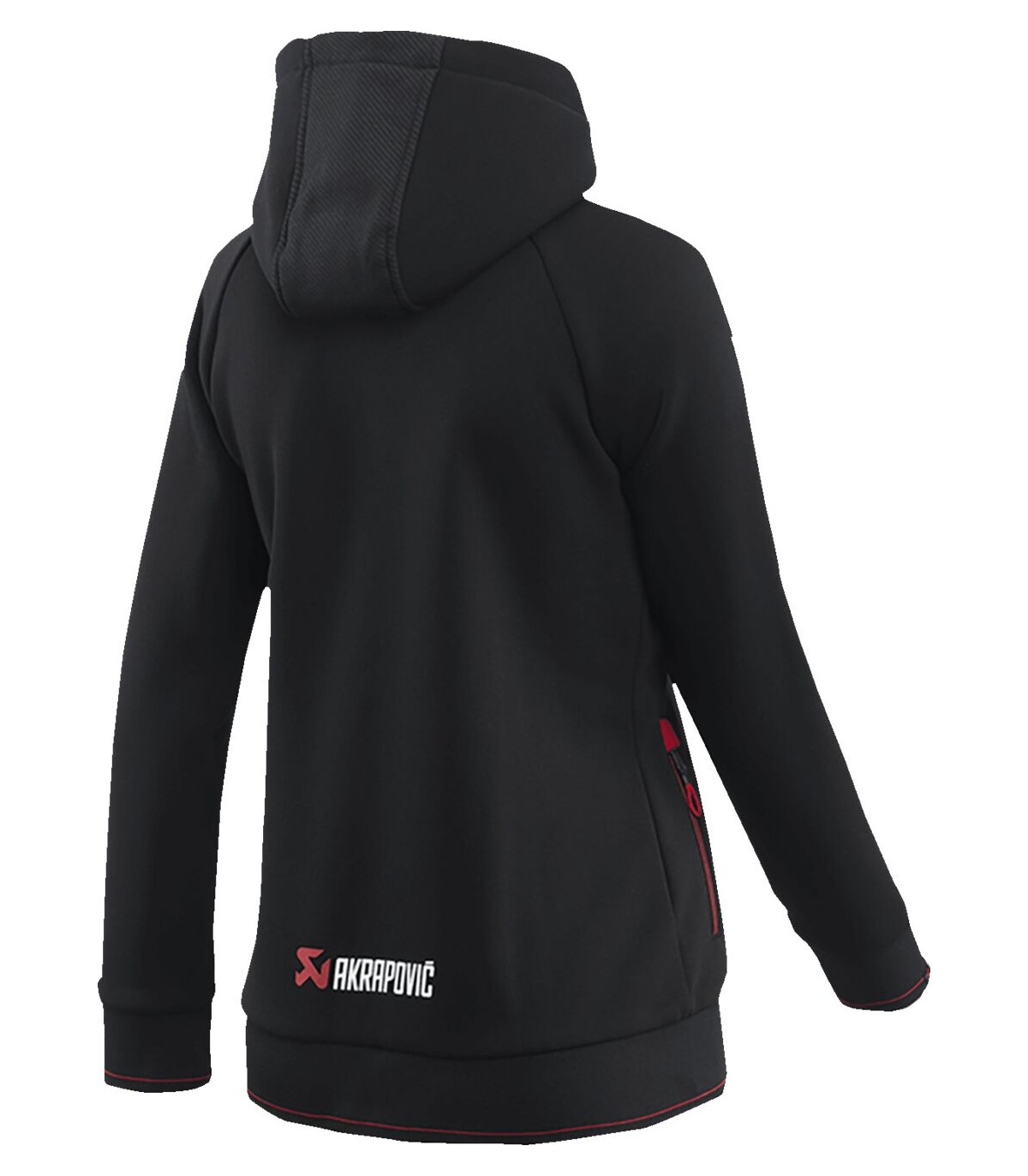 Women's Corpo Full-Zip HoodyDouble-knit cotton/polyester fabric provides a cosy feel and a fashionable look. Sporty and classy in equal measures, the hoodie is tailored for women and features a shadow 3D print on the front with red highlights and subtle Akrapovic logos front and back.