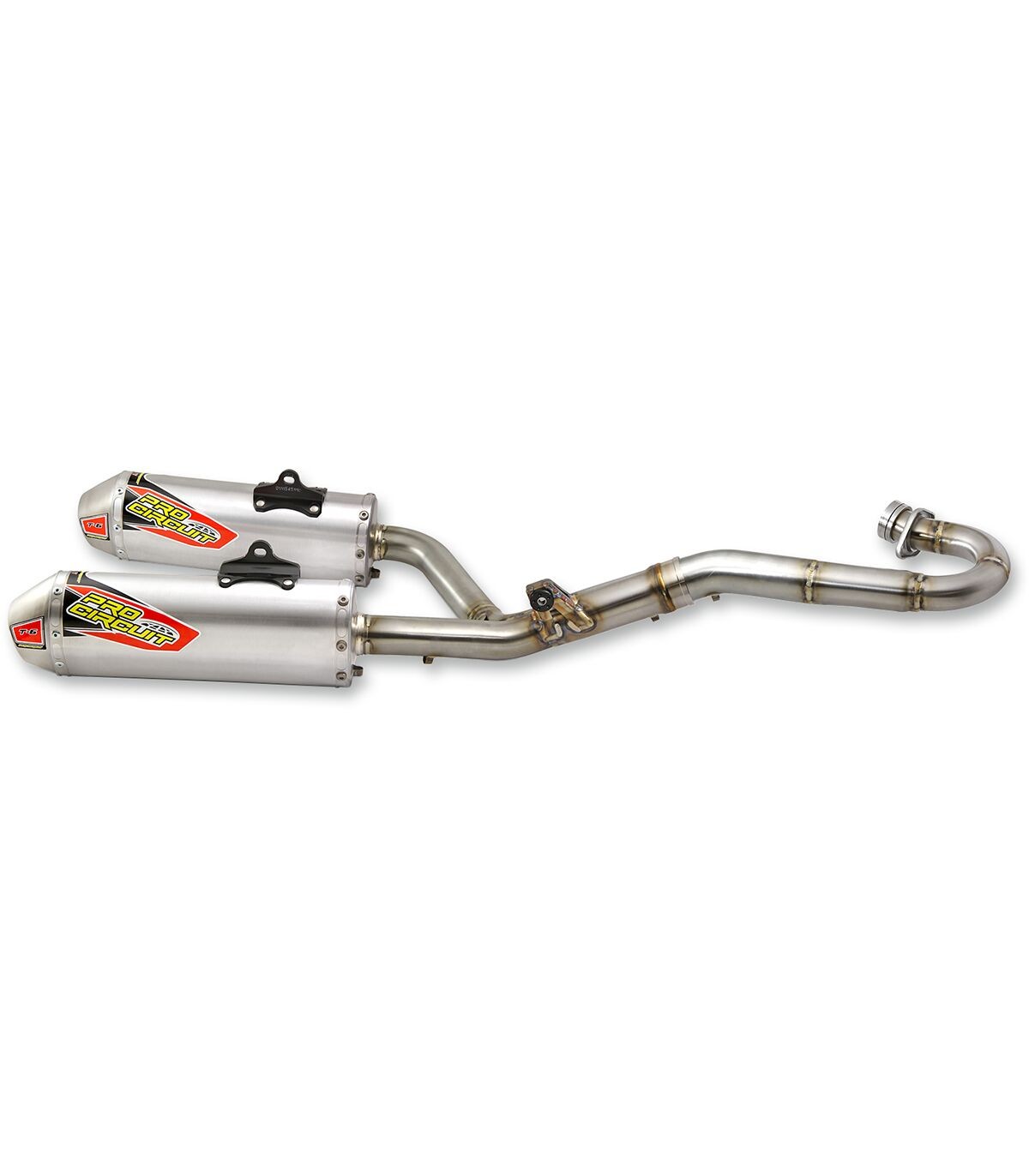 T-6 Exhaust SystemThe T-6 Stainless Steel Exhaust System offers the same benefits as Ti-6 Titanium Exhaust System, but the T-6 is constructed of stainless steel and aluminum for increased strength and durability while giving riders a more affordable alternative to titaniumComes with a removable United States Forest Service (USFS) Approved Spark Arrestor making it easy to alternate between off-road and closed course riding