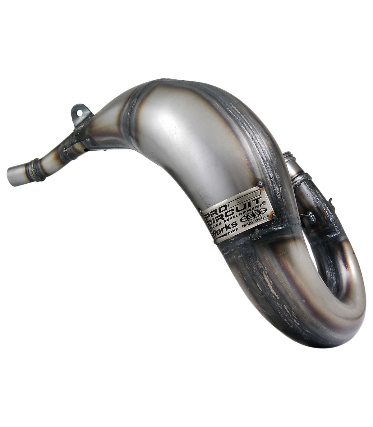 Works PipeThe first Pro Circuit pipe built with bare metal finish, giving it a unique style that sets it apart from all other pipesDurable construction conforms to the natural shape of the motorcycle for exceptional fit and performanceReinforced brackets and stingers prevent cracking, and CNC-machined flange provides precise leak-free fitDistinctive design yields increased horsepower and stronger throttle response throughout the entire rpm rangeExcellent choice for those who want factory-level high-performance featuresFeatures include stamped AKDQ high-quality carbon steel constructionHand-welded and pounded seamsEmbossed nameplate and CNC-machined exhaust flange