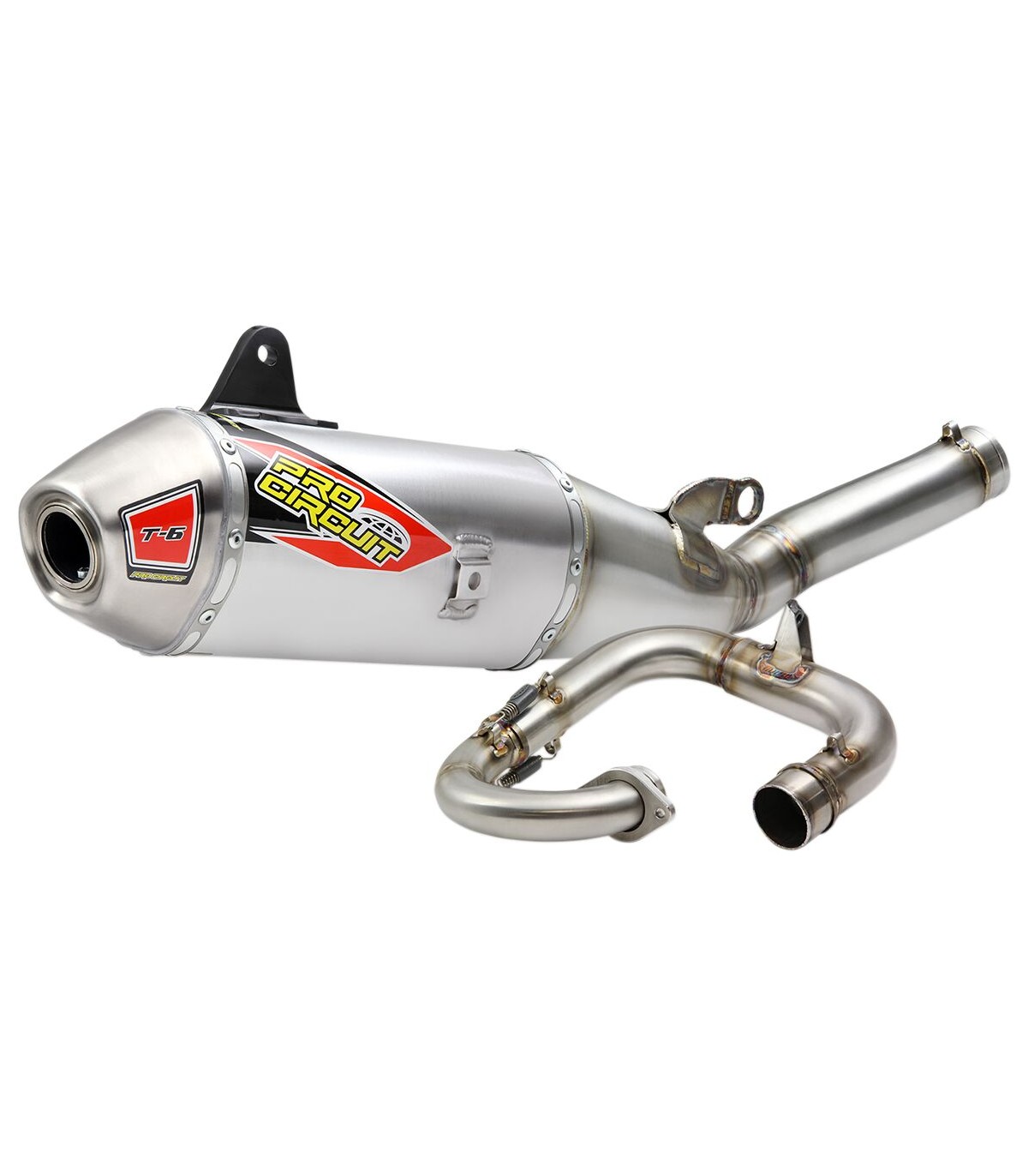 T-6 Exhaust SystemThe T-6 Stainless Steel Exhaust System offers the same benefits as Ti-6 Titanium Exhaust System, but the T-6 is constructed of stainless steel and aluminum for increased strength and durability while giving riders a more affordable alternative to titaniumComes with a removable United States Forest Service (USFS) Approved Spark Arrestor making it easy to alternate between off-road and closed course riding