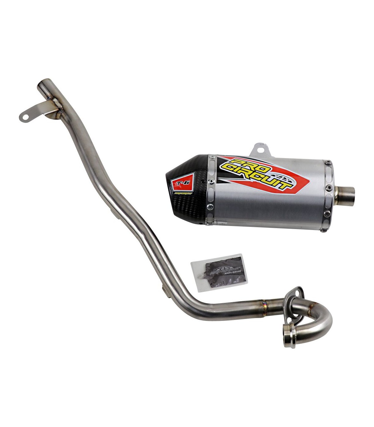 T-6 Exhaust SystemThe T-6 Stainless Steel Exhaust System offers the same benefits as Ti-6 Titanium Exhaust System, but the T-6 is constructed of stainless steel and aluminum for increased strength and durability while giving riders a more affordable alternative to titaniumComes with a removable United States Forest Service (USFS) Approved Spark Arrestor making it easy to alternate between off-road and closed course riding