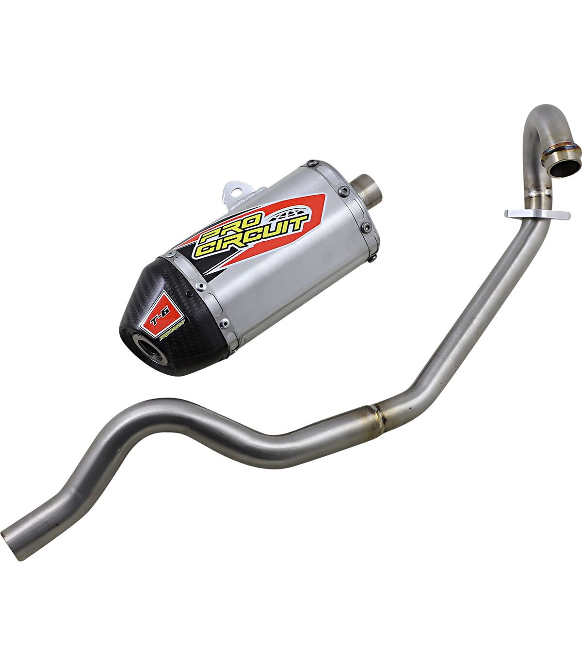 T-6 Exhaust SystemThe T-6 Stainless Steel Exhaust System offers the same benefits as Ti-6 Titanium Exhaust System, but the T-6 is constructed of stainless steel and aluminum for increased strength and durability while giving riders a more affordable alternative to titaniumComes with a removable United States Forest Service (USFS) Approved Spark Arrestor making it easy to alternate between off-road and closed course ridingIt does NOT pass AMA/FIM sound regulations.