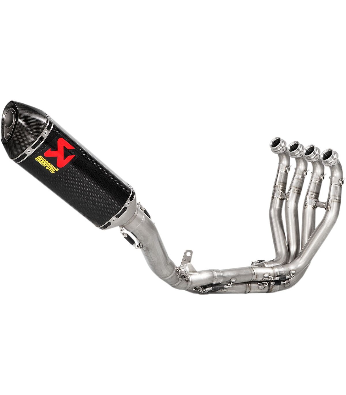 Evolution Line Exhaust SystemThis is a full system constructed from a high-grade and race-proven lightweight titanium alloy that provides an impressive increase in power across the entire rev range while also improving torque deliveryThe weight is decreased by over 5 kgThe system is finished with a hand-crafted carbon-fiber hexagonal muffler with a carbon-fiber endcap – inspired by Tom Sykes’s and Jonathan Rea's World Superbike–winning machineA power increase in excess of 16 HP (12.1 kW) and a unique deeper, sporty sound enhance the system’s sporty heritageThe bike’s ECU must be remapped when the Evolution Line system is installedFor perfect performance, throttle response, and durability, special mapping developed by Akrapovic in collaboration with our partner Rapid Bike by Dimsport has to be usedCarbon fiber muffler bracket with clamp must be ordered if passenger footrests are removed.