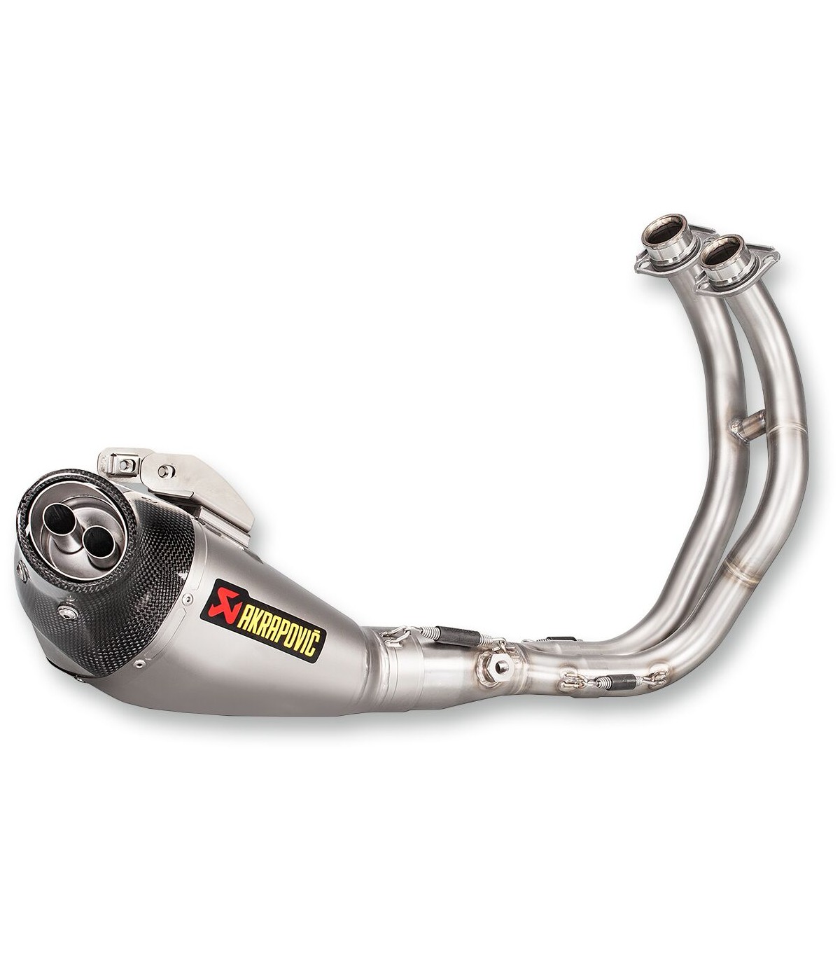 Racing Line Exhaust SystemWhen the position of the exhaust system needs to be changed and the stock bracket is no longer usable, a carbon fiber bracket is includedOutlet cap, perforated inner sleeve and inlet cap are all made of titaniumJoint of the inlet cap is milled on a state-of-the-art CNC machine and connected by high-quality, silicon-shielded tempered springsIncludes a lightweight, compact and high-temperature-resistant carbon fiber muffler clampConical shaped and hydroformed header is made of stainless steel; crossover tubes may be installed on certain modelsLink pipe may be cylindrical and in some models made of titanium; type of construction is based on maximum increase in performanceEC Type Approval requires installation of catalytic converter.
