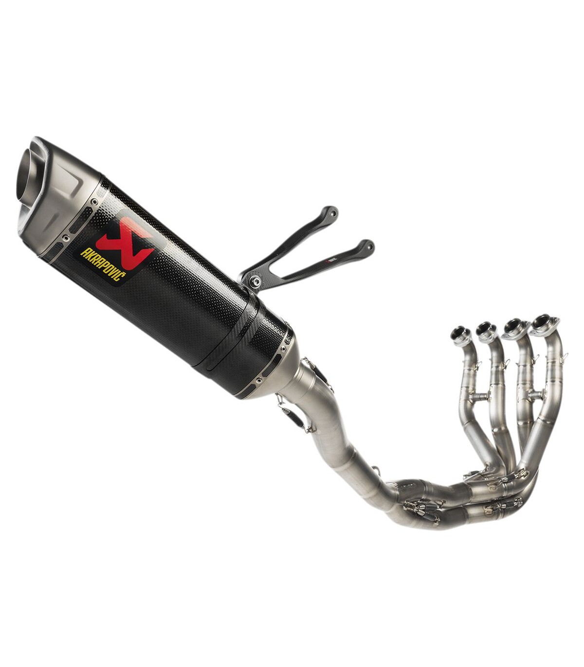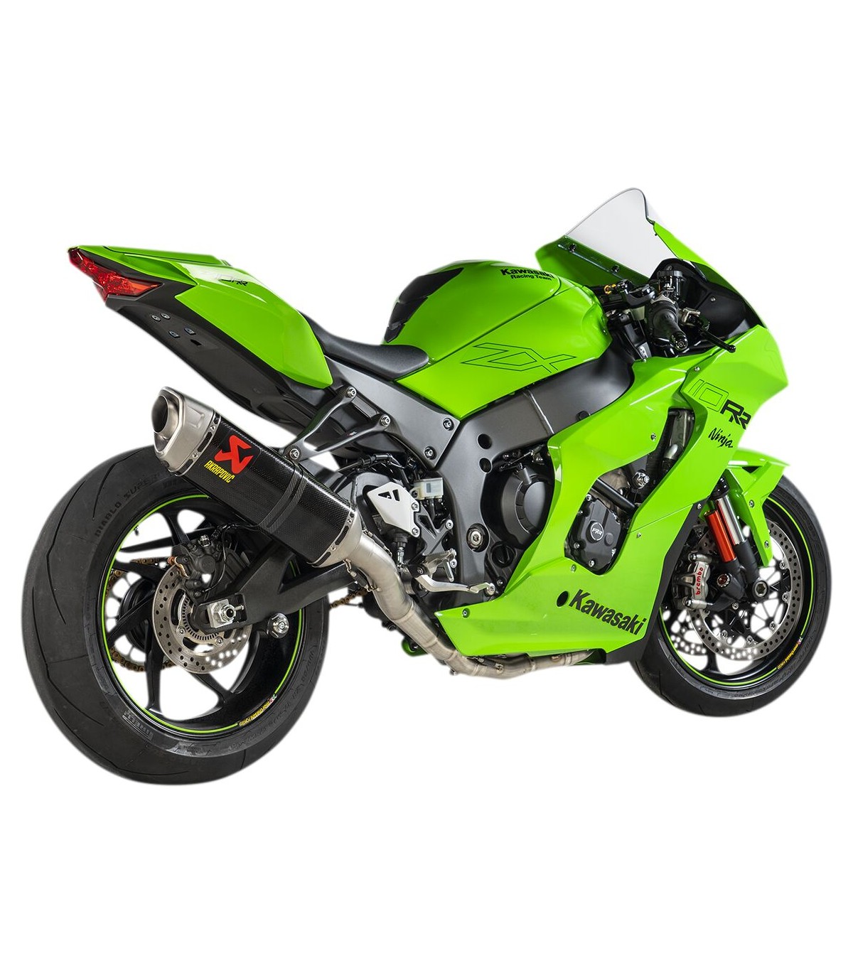 Racing Line Exhaust SystemThis is a complete stainless-steel exhaust system with a beautifully finished carbon-fiber muffler outer sleeve and high-grade titanium endcapWith the Racing Line, power and torque levels have been increased by an extra 8.2 Kw (11.1 HP) and 13.4 Nm, recorded on Akrapovic’s in-house dyno with back-to-back tests of the Kawasaki with a Racing Line (Titanium) exhaust and a Ninja ZX-10RR with a standard stock exhaust systemCoupled with linear delivery right across the entire rev range, it comes with a hexagonal muffler – including titanium inner parts to reduce weight – and a deep sporty soundThe bike’s ECU must be remapped when the Racing Line system is installed