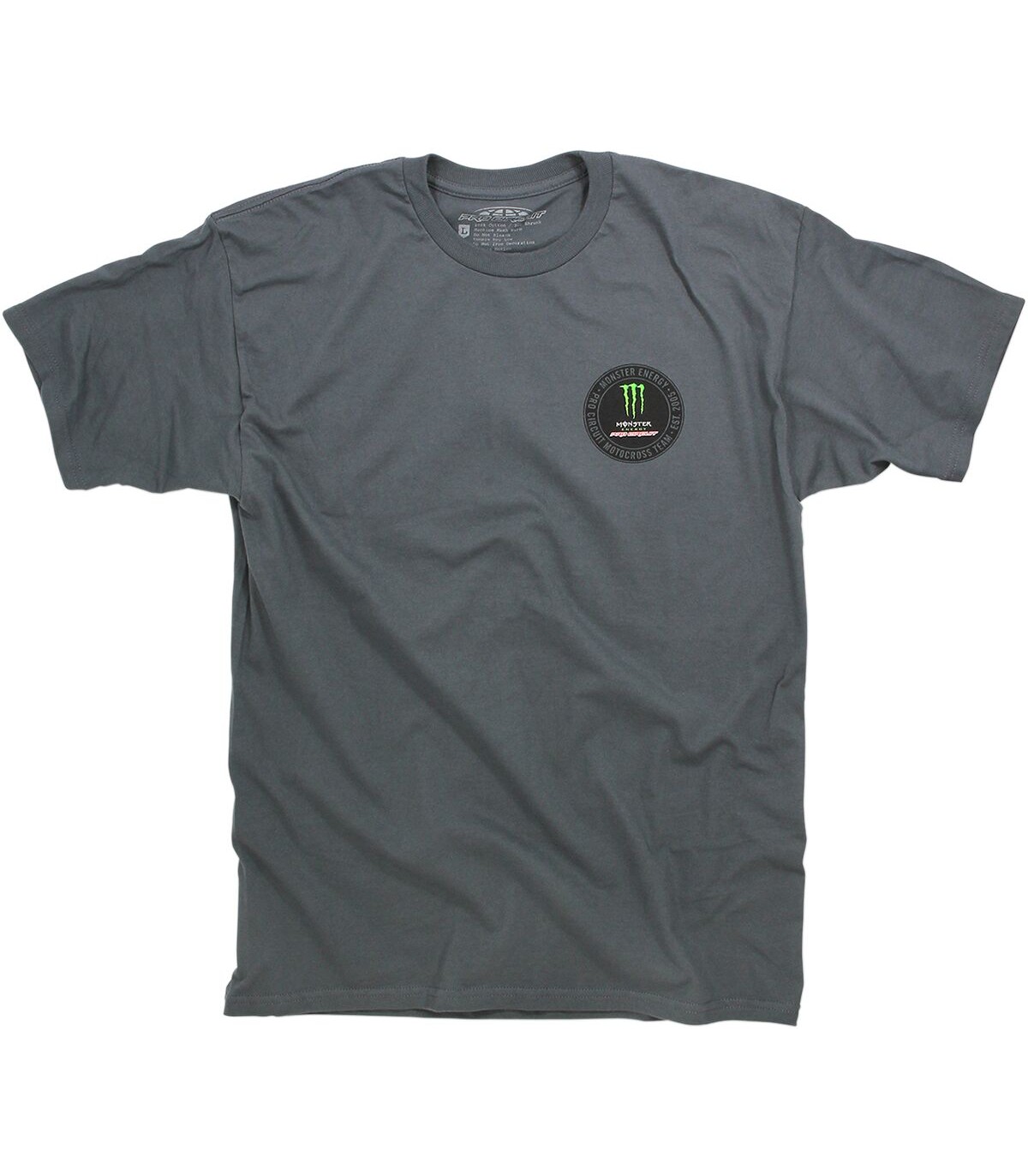 Patch T-ShirtCharcoal Pro Circuit/Monster Energy collaboration T-ShirtCircular graphic printed on the left chest and on the backGraphics utilize premier quality inks and state-of-the-art screen printing processes for long-lasting style