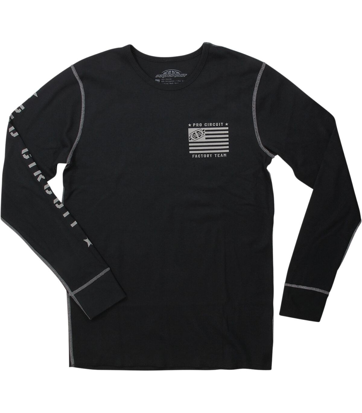 Factory Team Thermal T-ShirtSoft, lightweight thermal shirt with contrast stitchingPro Circuit factory flag logo on chest and Pro Circuit print on sleeveScreen printed with quality inks60% Cotton/40% Polyester construction