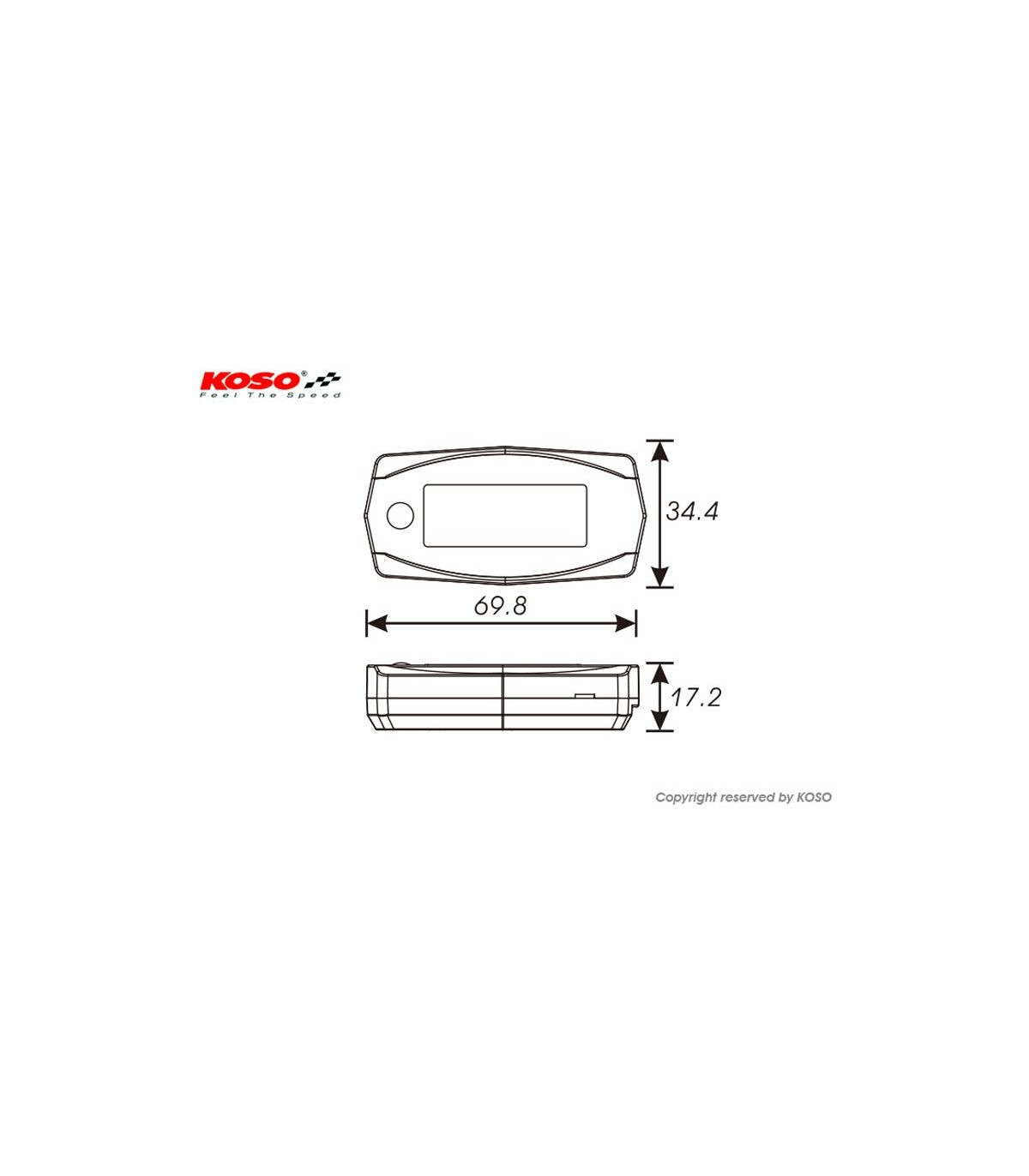 Dimensions : 69,8 mm l x 34,4 mm H x 17,2 mm P