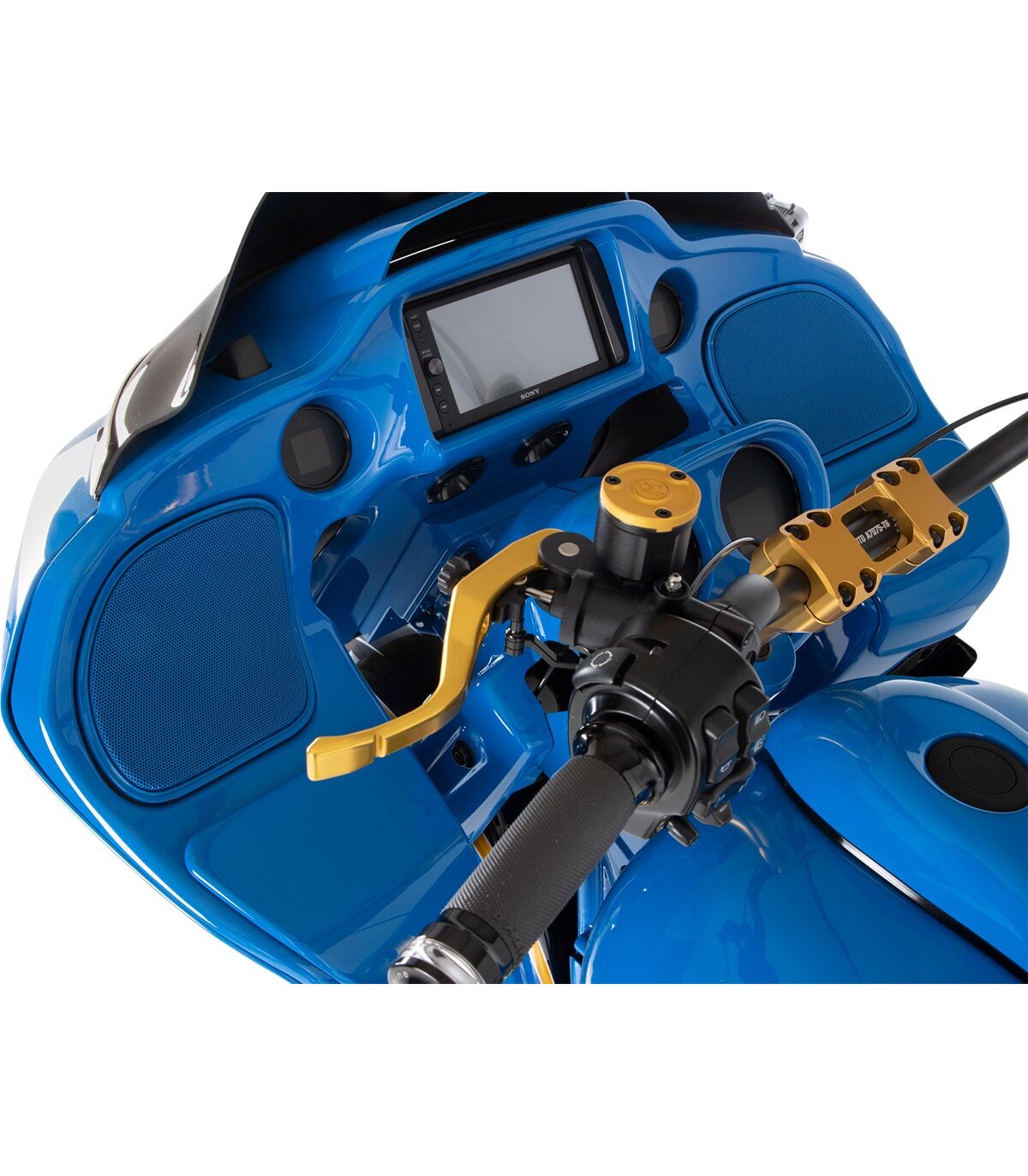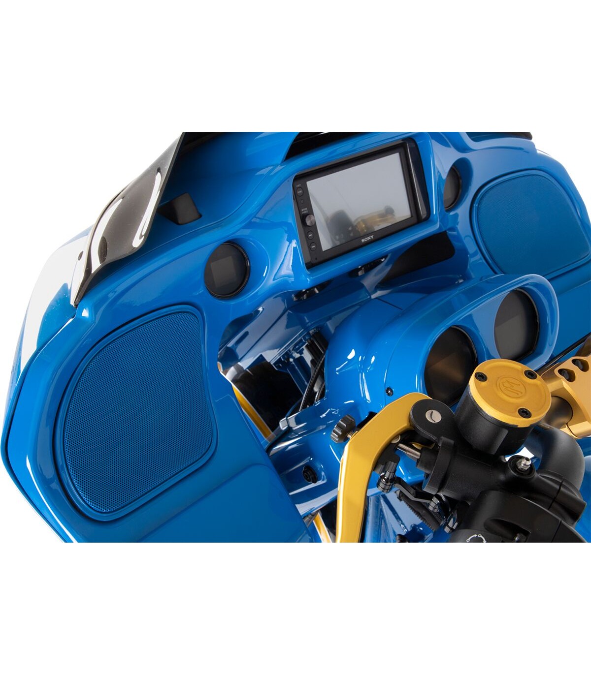 Four-Gauge MLX Series KitFour-gauge kit includes adjustable speedometer with odometer, tachometer, oil temperature (sensor included) and voltage gaugesDisplays clock and gear position; calculate 0-60 time, 1/4-mile time, 1/4-mile speed; feature high-speed and high-rpm recallAlso includes a pair of fully programmable gauges that can display oil pressure, oil temperature (sensor included), voltage and fuel level readingsIncludes a main gauge speedo/tachometer with odometer, dual trip meters and other programmable informationDirect plug-in four-gauge digital instrumentation systemHigh-visibility LED display is easy to read, even in direct sunlightSmall gauges can be programmed for the rider’s ideal layout31 illumination colors availableEU: Displays clock and gear position; calculate 0-100 km/h; feature high-speed and high-rpm recallKit retains existing bezels.