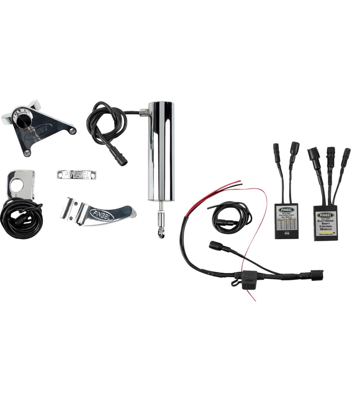 Kit de sélecteur de vitesse électrique Easy Shift™Dispositif qui suspend électroniquement le système d'allumage, permettant un changement souple à la vitesse inférieure ou supérieure sur simple pression d’un boutonPassez à la vitesse supérieure à plein ou moyen régime et rétrogradez sur simple pression d'un boutonPlus besoin d'utiliser le sélecteur de vitesse au pied et l'embrayage est uniquement utilisé au démarrage ou à l'arrêtPour une utilisation normale ou pour un déplacement complet de l'accélérateurIdéal pour les pilotes qui possèdent une moto dont le levier d’embrayage requiert une grande force pour être tiréLe passage de vitesses d'origine est maintenu après l'installationComprend une commande à double commutateur au guidon, un vérin d'engagement cylindrique plaqué avec une finition en chrome lustré, une patte de fixation de support de vérin d'engagement cylindrique à visser et un boîtier de commande dernier cri qui envoieComprend également un boîtier de coupure d'allumage électronique et des instructions étape par étape avec des photos pour une installation facileFabrication aux États-Unis.