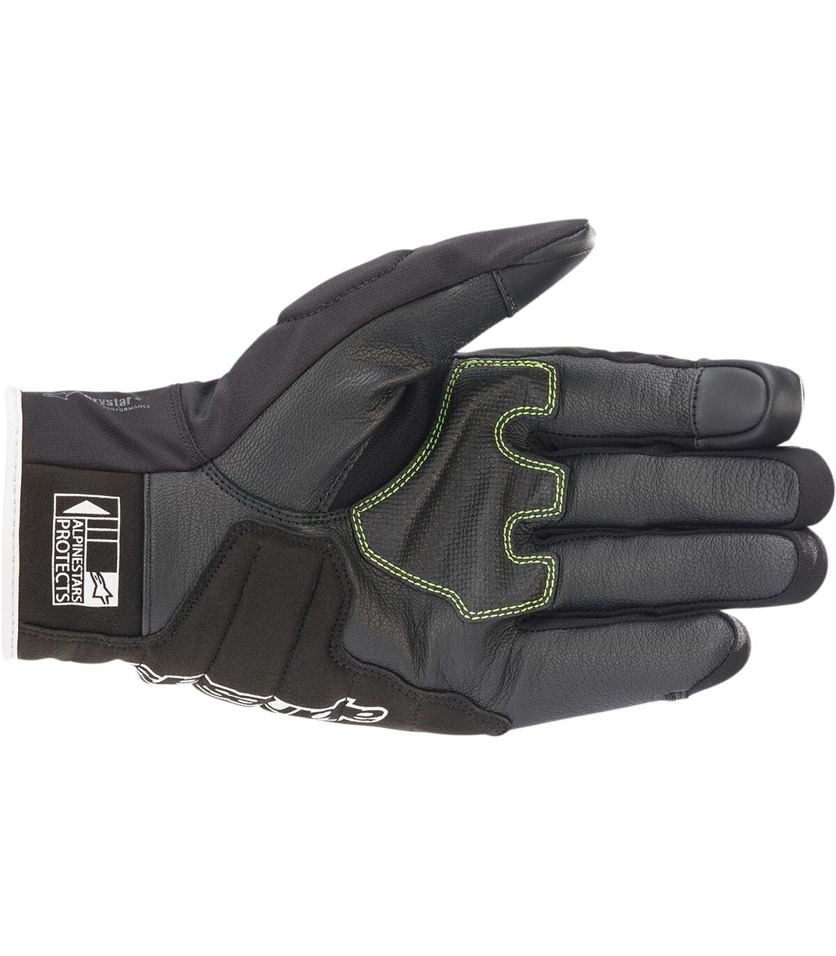 SMX Z Drystar® glovesConstructed from a supple and highly durable full-grain goat leather chassis to provide core abrasion resistance and durabilityIncorporates Alpinestars 100% waterproof Drystar® performance membrane construction technology, thereby affording a highly reduced material chassis to promote dexterity and sensitivity of bike controlsStretch back hand and stretch inserts for an optimal fitHard knuckle provides class-leading impact and abrasion protectionSuede side hand reinforcements for additional strengthPalm reinforcement for a superior gripRolling palm construction on pinky for additional abrasion resistanceTouchscreen compatible fingertip area on index and thumbGloves EN 13594:2015