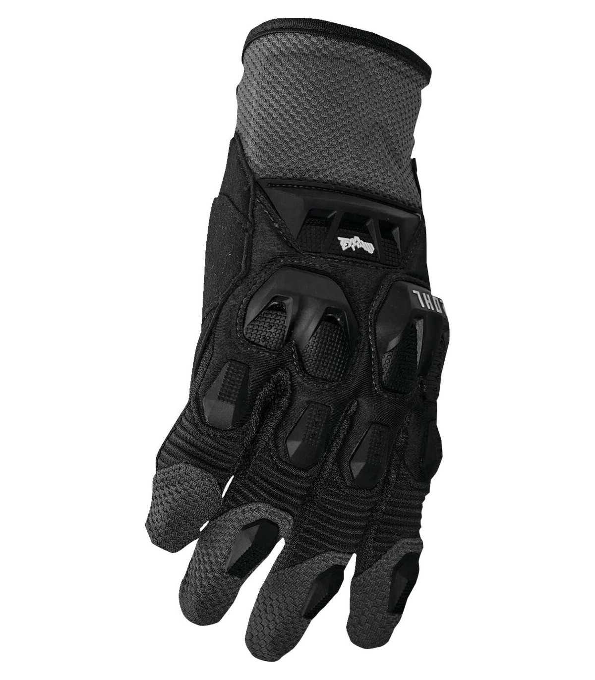 Terrain GlovesConstructed with a combination of durable mesh and Airprene for optimal airflowSilicone treated finger tipsStretch mesh flex joints on fingersNotched wrist openingTPR knuckles and layered backhand panels