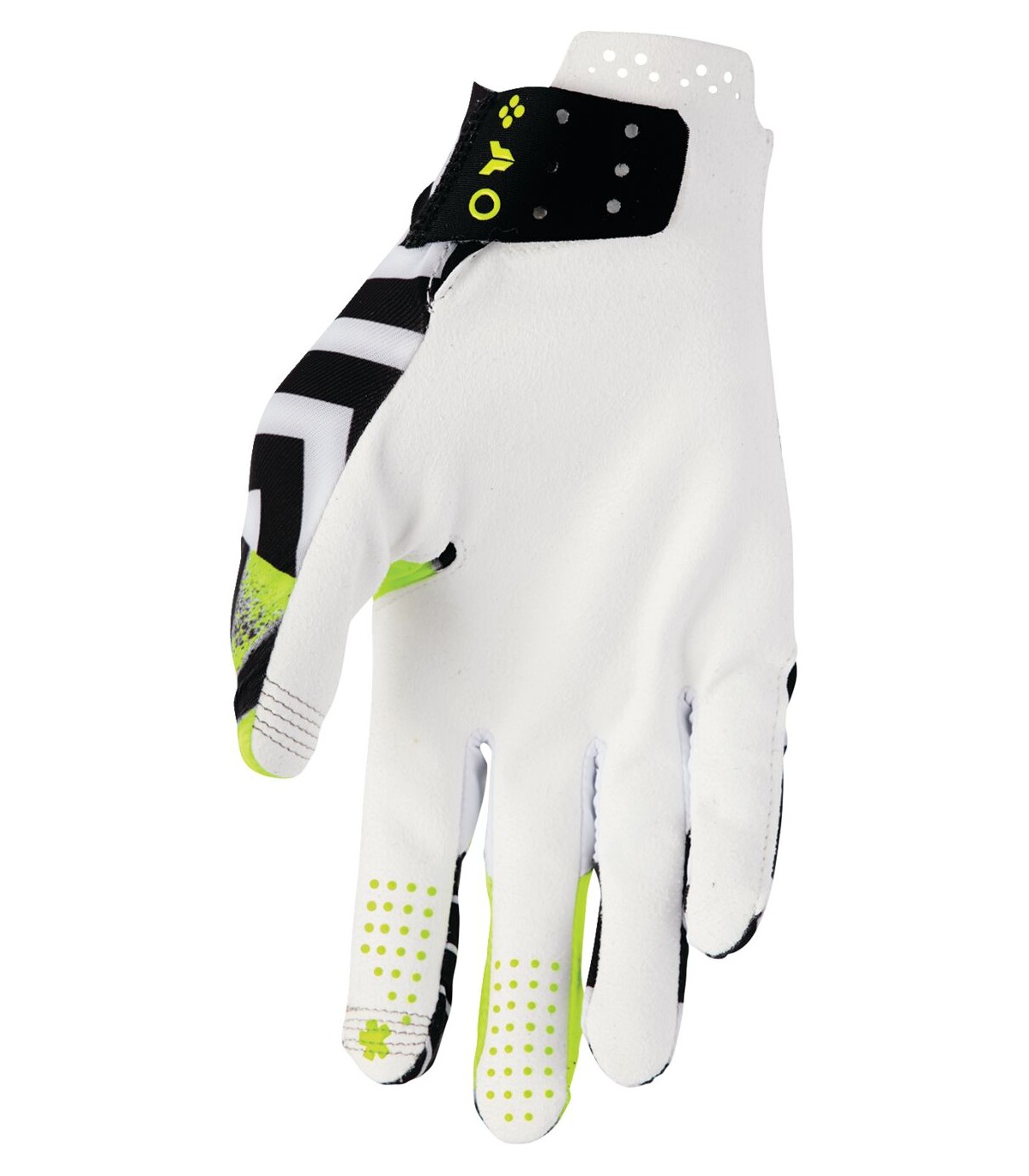 SPORTMODE Anarchy GlovesFour-way stretch Polyester/Spandex chassis construction for unrestricted mobilitySoft Clarino® palm material for unmatched comfortTaped cuff hem for reduced skin irritationMoisture wicking material properties keep the hands cool and drySticky silicone printed fingertips for improved lever controlMinimal seam chassis design for maximum stretch performance and comfortFinger data stitching for ease in mobile device navigation
