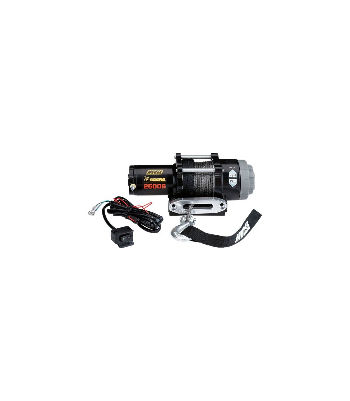 Aggro Winch Synthetic RopeDurable all-metal construction.Load-holding mechanical brake for great control.Smooth and reliable all-metal three-stage planetary gear train.Waterproof sealing.Made in China.Scope of delivery: handlebar-mounted rocker switch, hawse fairlead, zinc plated hook, contactor, power cables, mounting plate and hardware.