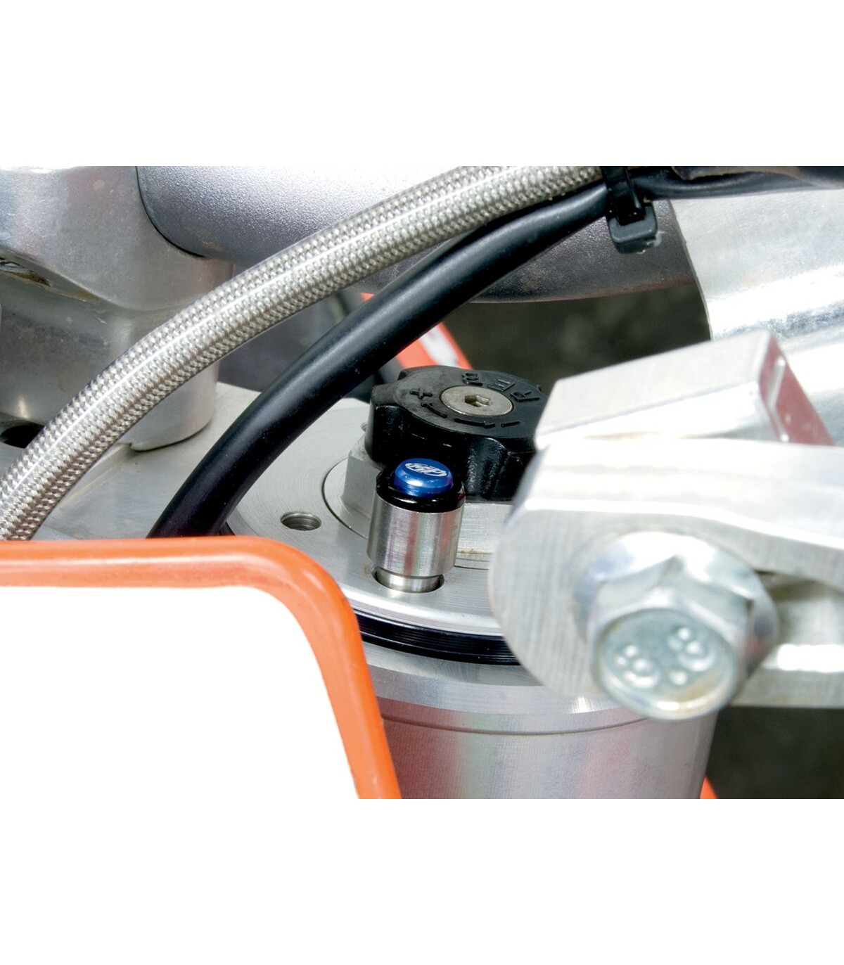 Micro BleedersUltra-compact, low-profile design is only 11 mm high installedStainless steel body is stronger and will not corrodeEasy to install - simply replace the OE bleeder screw with the Micro BleederReduce harshness caused by air buildupAllows bleeding of pressure without toolsOne of the easiest bolt-on upgrades you can make to your forksKit includes two bleeder valvesM4 x 0.7; For KTM SX/SX-F/XCF/XCW '07-later models with WP 4860 MXMA CC closed cartridge fork caps and all '99-later WP 43/WP 48 fork caps w/ external preload adjusters (these fork caps require 4-pin spanner PART #MP08-0290 to remove fork cap).
