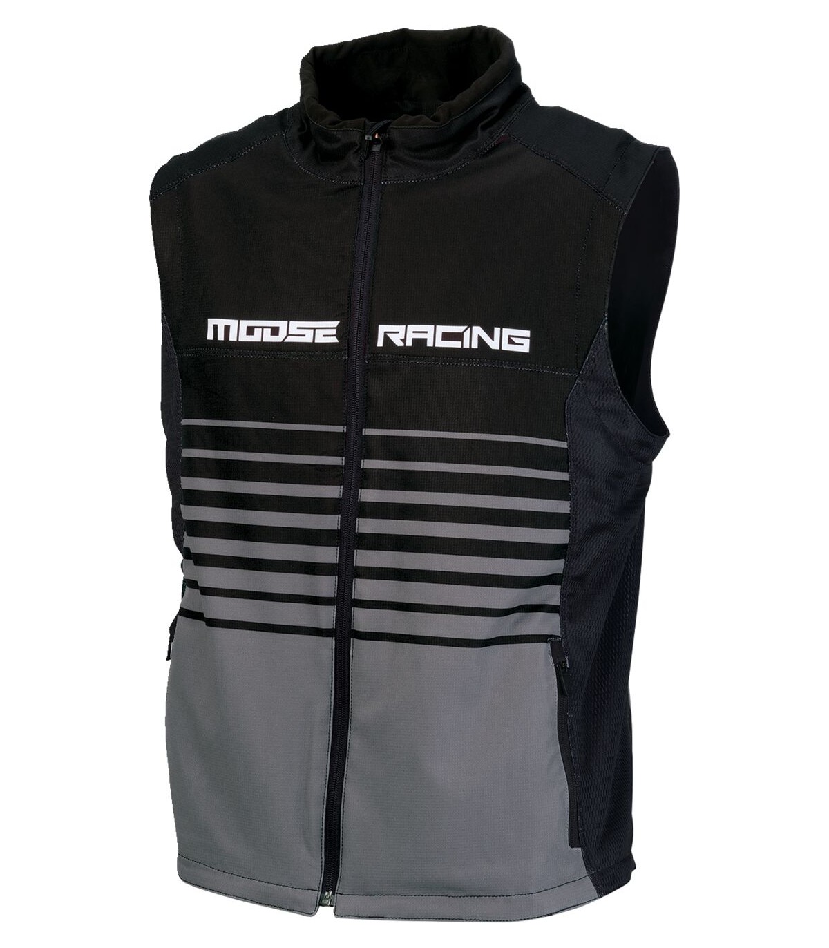 Moto VestMoose Racing logo on front and backLightweight and breathable fabricVented backZippered handwarmer pockets on front, and storage pocket on back of vestNon-fading sublimated graphicsYKK® Semi-Auto Locking Zippers