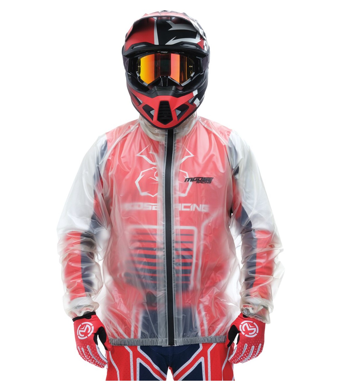 Clear Rain JacketElastic neck band and hem for maximum rain protectionComplete PVC constructionWaterproof zipperClear design for jersey visibilityMesh underarm panels for ventilation