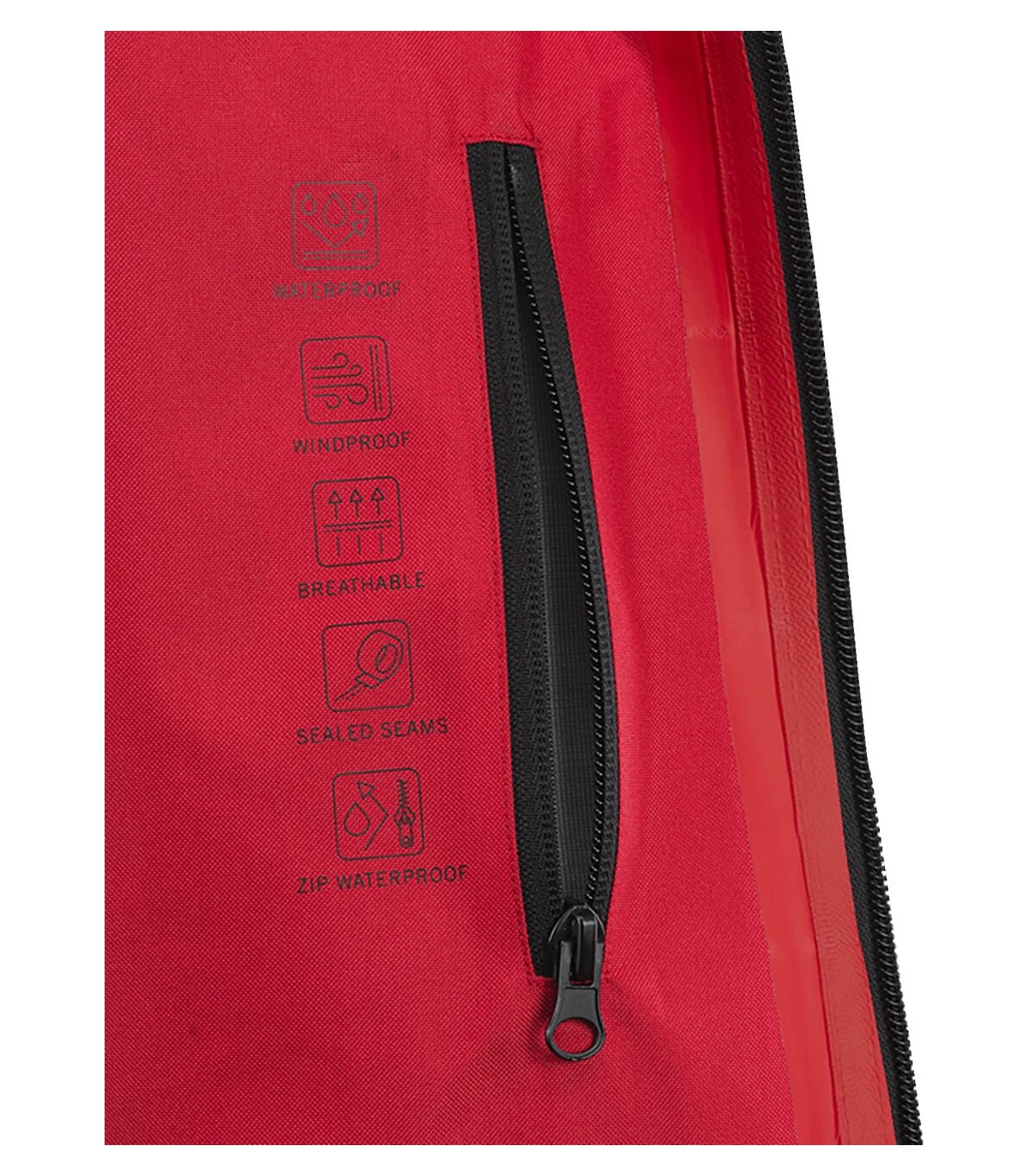 Corpo Rain JacketMade from 100% polyester, its three layers keep you protected under most conditions.A 10,000 mm water column keeps out rain and even snow, and the 8,000 mm breathable column keeps you comfortable.3D logo on the front with red highlights and subtle branding