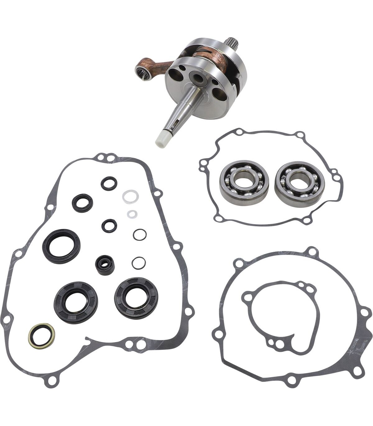 Kit vilebrequinLes vilebrequins sont assemblés en usine et équilibrés avec précision selon les spécifications d’origineLes bielles Wiseco à double forge maintiennent une constance dimensionnelle supérieure via un flux amélioréLe grenaillage élimine les tensions résiduelles et permet le mélange des surfaces de forge de la bielleTraitement de surface anti corrosionLe jeu de roulement radial de la cage à aiguille d’axe de piston du vilebrequin est optimisé afin de garantir des performances maximalesLe déglaçage de précision garantit une surface de roulement très rondeLes ouvertures lubrifiées fabriquées avec précision améliorent la résistance de la bielle et la durée de vie du roulementLes extrémités à double perçage offrent à l’axe de piston une lubrification et un refroidissement supplémentaires, réduisant ainsi la déformation du haut-moteur en raison