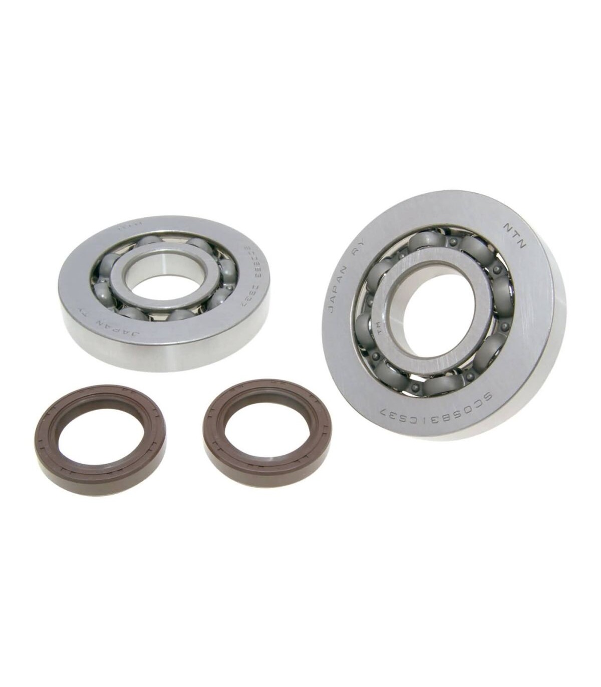 Crankshaft Bearing Set FKM for Gilera Runner, Piaggio Hexagon, Italjet Dragster 125, 180ccA set of high quality Japanese NTN bearings with C3 clearance and FKM shaft sealsThe set includes the crankshaft bearings left and right as well as the associated sealing ringsFKM seals are among the best oil seals currently available on the marketWhen changing the crankshaft, always use new bearings and crankshaft sealsThe difference between FPM, FKM, Viton®: Behind the abbreviations or names mentioned is the identical basic material - fluororubber. FKM is the abbreviation for fluoroelastomers according to the American ASTM standard. Viton®, on the other hand, is a trademark of the company DuPont Performance ElastomersIn our range, all fluoro rubber articles are designated with the abbreviation FKM