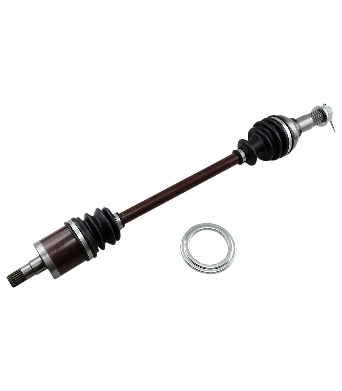 Kit d’axe completTous les composants internes réalisés avec précision sont assemblés grâce à de la graisse moly pour roulement résistant aux températures et charges élevéesTêtes de cardan côté pont et côté roue entièrement assemblées installées sur un arbre du cardan en acier chromoly 43-40Inclut un écrou d’axe et une rondelle (le cas échéant)Assemblage à l’aide de clamps low-profile en acier inoxydable