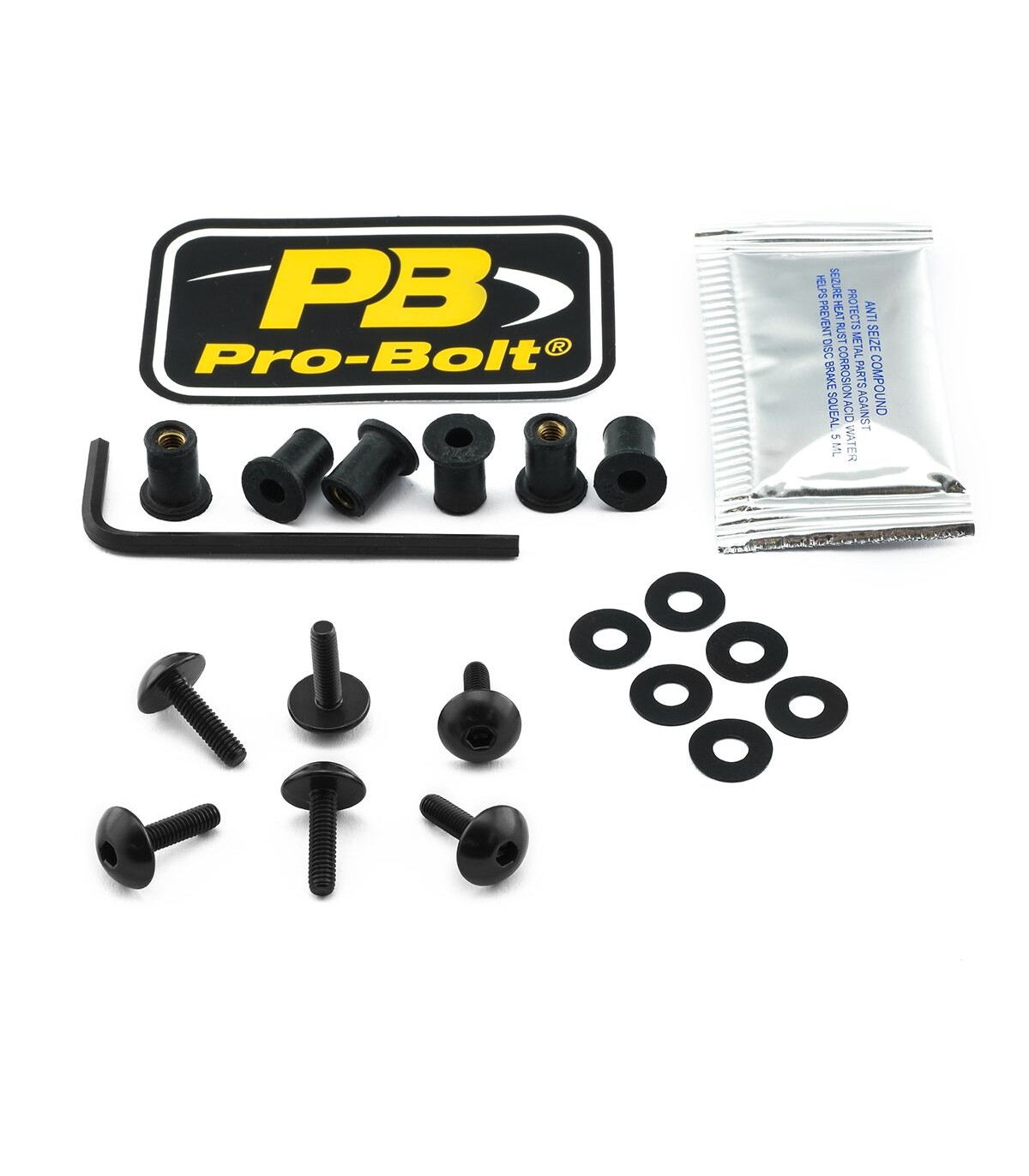 Aluminium Screen Bolt KitCNC machined from high tensile aluminium.5 colour options for unique customisation.Excellent corrosion resistance.Easy installation, kit includes rubber nuts and anti-scratch washers.Compliments Fairing bolt kits.