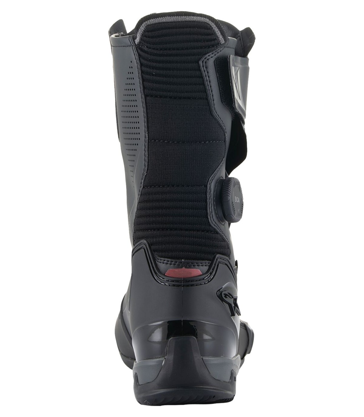 Bottes SP-X BOALes bottes SP-X sont des bottes de sport élégantes qui peuvent se glisser sous un pantalon de moto technique et sont très robustes pour la la marche.Optimisées pour les pilotes sportifs et les adeptes du Sport Touring, ces bottes compactes mi-hautes sont synonymes d’une protection et d’un confort élevés tant sur la moto qu’en dehors.La tige conjugue matériau Rideknit® et maille tricotée et comprend des éléments thermosoudés sans coutures.La partie inférieure de la botte présente un contrefort en TPU, un insert aux orteils et une semelle incorporant la technologie TPF (Transversal Protection Frame) d’Alpinestars ; tous ces éléments fournissent une protection conséquente contre les impacts En outre, la semelle arbore un tout nouveau design avec un talon asymétrique pour faciliter la foulée naturelle du pilote et favoriser la stabilité en dehors de la moto.Les bottes SP-X comportent, en guise de protection, un protège-tibia intégré, des disques double épaisseur aux chevilles, sans oublier un embout pour sélecteur de vitesse en TPU et un renfort aux orteils.Pour le confort, les sections tricotées sur les points de flexion avant et arrière apportent une grande liberté de mouvement, tandis que la semelle intermédiaire en polyuréthane avec double coussin intégré au talon et la semelle intérieure OrthoLite® amovL’enfilage et le retrait sont aisés du fait de la fermeture éclair médiane et du système de laçage rapide BOA, qui créent une fermeture compacte et précise.Les bottes SP-X sont parfaites pour les pilotes sportifs en quête d’une protection adéquate mais qui ne veulent pas de chaussures ressemblant à des bottes de compétition qui se portent par-dessus le pantalon.