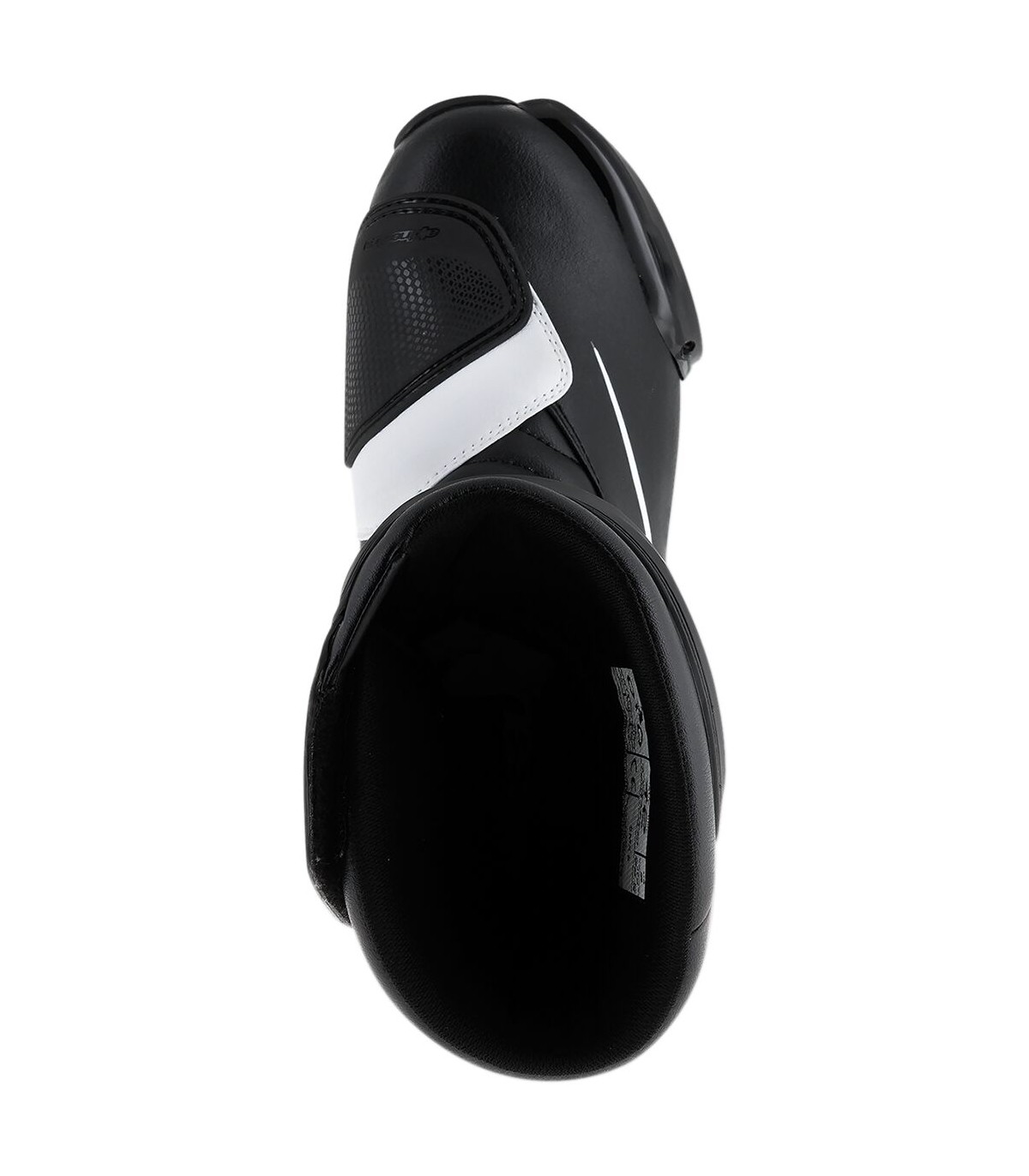 Bottes SMX-SDotée d’une tige en microfibre solide pour le confort et l’ajustement et d’un ensemble de caractéristiques de protection élaborées, tant à l’intérieur qu’à l’extérieur, la botte SMX-S arbore une forme ergonomique à l’avant et incorpore une doublure respirTige en microfibre de pointe durable assurant un grand degré de souplesseLe polyuréthane injecté double densité protège des impacts le tibia, la cheville, le mollet, les orteils et le talon tout en minimisant l’abrasion.Le pied est protégé à l’intérieur de la botte par un panneau doublement injecté dissimulé sous la coque externe, qui est rattaché au contrefort et remonte sur l’extérieur de la cheville.La doublure en polyamide à séchage rapide est laminée avec de la mousse à cellules ouvertes et un rembourrage enveloppant haute densité afin de permettre une bonne absorption des chocs au niveau du pied.Insert aux orteils en polyuréthane injecté double densité interchangeable à clipserLes aérations innovantes à la cheville, au talon et sur l’avant de la botte sont recouvertes d’une maille spécialement conçue pour apporter au pilote un confort sans équivalent.Soufflets flexibles qui élargissent grandement la botte au cou-de-pied et sur le talon d’Achille, pour une souplesse et un confort extrêmesLa doublure en maille MTP et la surface d’appui anatomique amovible en mousse de polyuréthane garantissent la fraîcheur et l’aisance du pied.Système innovateur d’ouverture/de fermeture impliquant un enfilage latéral (médian), composé d’une fermeture éclair fixée sur élastique avec rabat Velcro® ultra large, qui génère un ajustement précis et confortable, et d’une grande ouverture pour faciliteForme très ergonomique pour un ajustement extrêmement précis