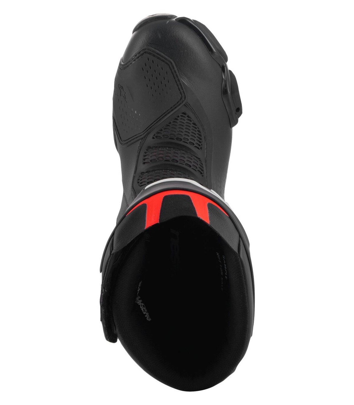 Bottes SMX-6 V3Avec leurs diverses caractéristiques de protection innovantes, les bottes SMX-6 V3 sont un modèle polyvalent, car elles conviennent aussi bien pour s’attaquer aux pistes que pour la conduite sportive. Elles intègrent des technologies et des matériaux issuTige en microfibre élaborée fournissant en toute légèreté une protection contre l’abrasion très efficace et une incroyable flexibilitéLes zones de flexion devant et derrière sont en tissu recouvert de polyuréthane thermoplastique (TPU) souple afin de réduire l’abrasion en cas de choc tout en favorisant une mobilité naturelle vers l’avant et vers l’arrière.Le système d’orthèse de cheville unique d’Alpinestars fournit un support biomécanique et une protection entre le haut du mollet, le tibia et la cheville, pour une articulation de la cheville optimale et, en même temps, limite la torsion excessive, l’hyperLe système Lace-Lock d’Alpinestars est constitué d’une résine polymère sophistiquée, qui assure une fermeture rapide, précise et sûre.Équipées d’une section de contact avec le sélecteur de vitesse en TPU pour une protection élevée sur le côté médian inférieurUn protège-tibia dérivé de la course en TPU, stratégiquement placé, délivre une résistance remarquable aux chocs et à l’abrasion.Des protections de chevilles à double densité en TPU sont positionnées de manière stratégique entre la tige et la doublure rembourrée en vue de préserver les zones clés.Un insert d’orteils en TPU double densité remplaçable à visser offre une couverture extérieure intégrale autour de la zone des orteils et engendre une marche confortable du fait de son extrême souplesse.L’insert remplaçable et l’insert latéral externe au talon sont stratégiquement positionnés de façon à ce que les chocs soient atténués et amortis au mieux et aident à provoquer le glissement en cas d’accident.