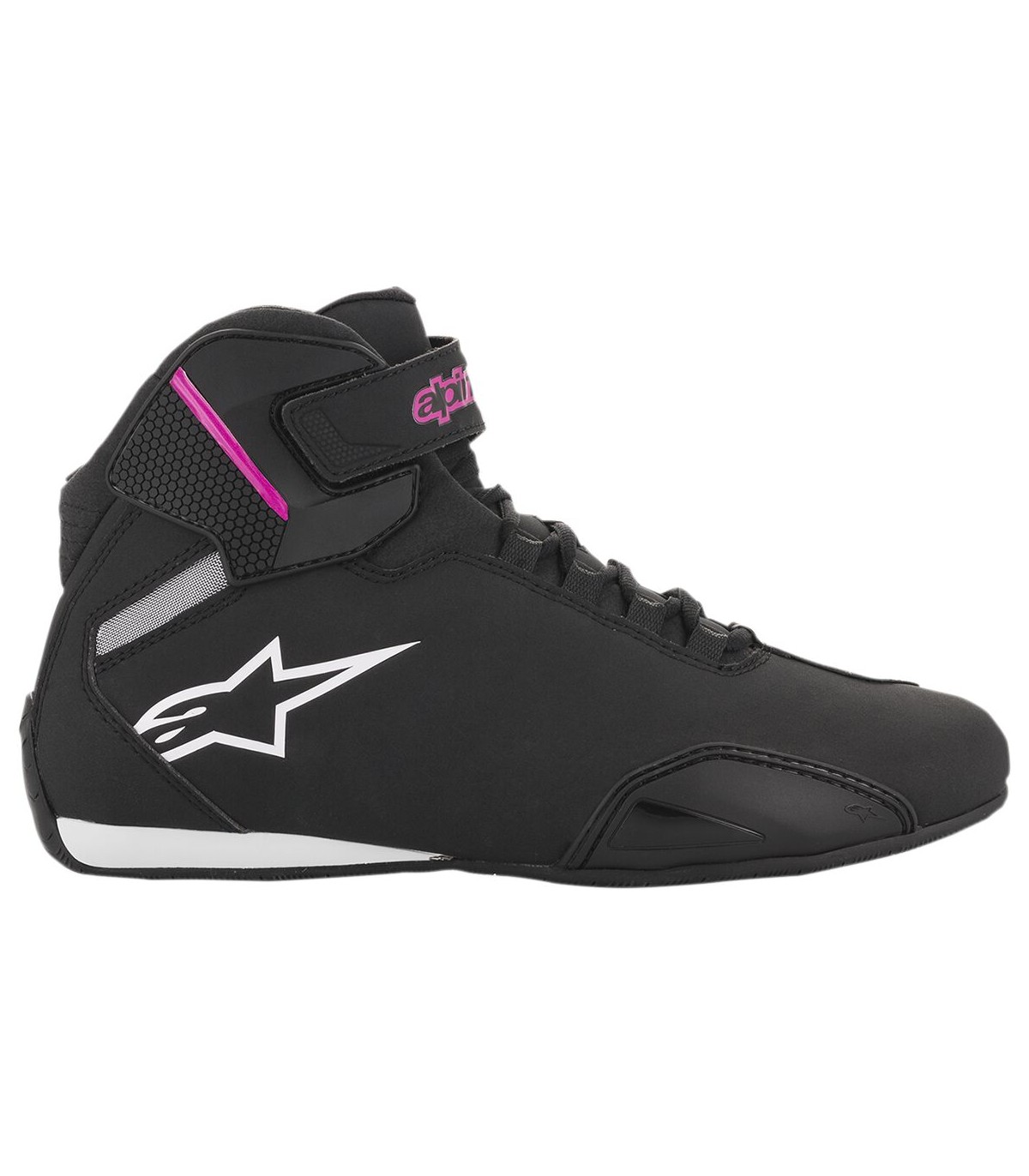 Chaussures Stella SektorForme spécialement adaptée aux pieds des femmesLa tige est fabriquée en microfibre légère, durable et résistante à l'abrasionProtection des chevilles 3D pour un meilleur ajustement et plus de légèretéSystème à laçage rapide originalLe strap à la cheville assure une fermeture sûre et s'adapte au panneau de protection polymère supérieur de la cheville pour garantir une finition planeZones flexibles situées au niveau du talon et du cou-de-pied pour un meilleur confort de marcheLa doublure est en filet 3D respirant avec une surface antidérapante en daim microfibre à l'intérieur au niveau du talonProtections interne de la pointe des pieds et du contrefort de talon placées sous le châssis externe de la chaussureSemelle en caoutchouc légère avec un design profilé et une tige de support intégrée pour une rigidité accrueSurface d'appui en EVA anatomique et remplaçable avec une doublure en tissu stretch sur la partie supérieureÉvent à filet métallique