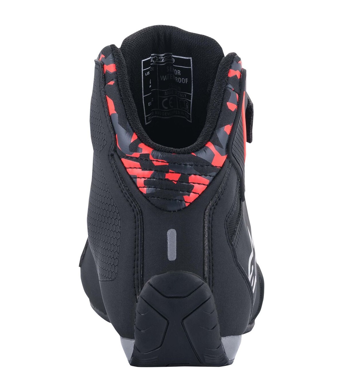 Chaussures imperméables SektorLa partie supérieure est fabriquée en microfibre ultra légère, durable et résistante à l’abrasionDoublure en membrane imperméable pour des performances éprouvées dans des conditions météorologiques difficilesProtection des chevilles sur la partie médiane pour un meilleur ajustement et plus de légèretéSystème à laçage rapide original dérivé des chaussures de cours pour un ajustement et une sensation personnalisésLe strap latéral à la cheville assure une fermeture sûre et s'adapte au panneau de protection polymère supérieur de la cheville pour garantir une finition planeProtection et bande latérales en caoutchouc thermoplastique (TPR) à la cheville pour mieux préserver le pied et accroître la résistance à l’abrasionLes zones flexibles situées au niveau du talon et du coup-de-pied confèrent un meilleur confort de marcheDe petits détails réfléchissants dans la zone du talon et des œillets améliorent la visibilité du pilote par les autres usagers de la routeLes protections internes de la pointe des pieds et du contrefort de talon sont placées sous le châssis externe en microfibreLa semelle en caoutchouc extrêmement légère, spécialement composée, offre une adhérence texturée, une excellente absorption et comporte une tige de support intégrée pour une rigidité accrue de la semelleSemelle intérieure en EVA anatomique et remplaçable avec une doublure en mesh sur la partie supérieure