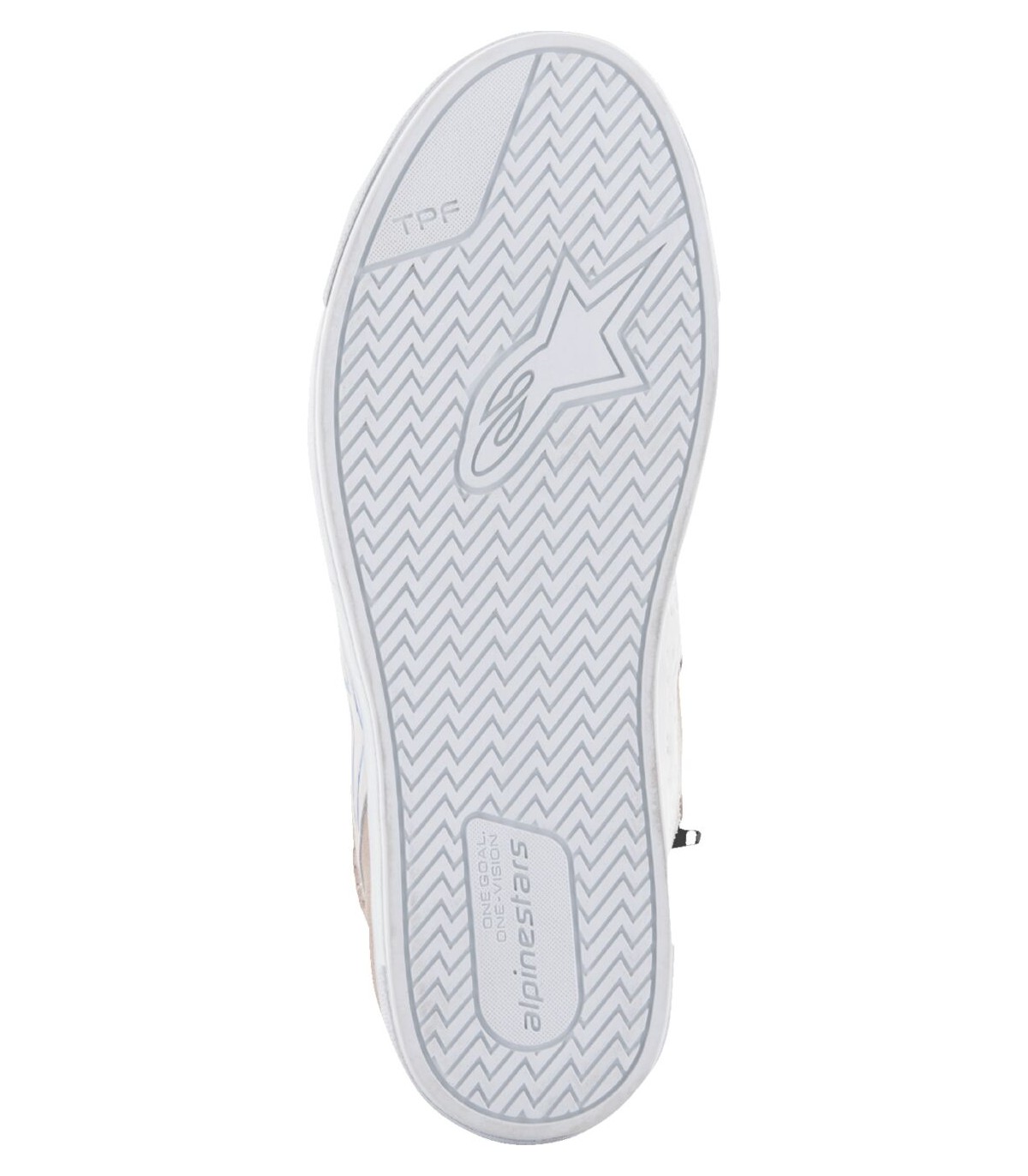 Chaussures Stella Stated PodiumConception anatomique spécialement adaptée aux femmesVariante moderne de tennis rétro selon la vision d’AlpinestarsConjuguent le style de chaussures de patinage minimalistes avec une semelle en composé vulcanisé épaisse, formant des chaussures de conduite à la fois protectrices et ultra confortables à l’aspect dépouillé branché qui fera sensation pour des escapades enLa forme, spécifiquement pensée pour les femmes, épouse les contours naturels des pieds féminins pour conférer un confort maximal, sur la moto comme en dehors.La semelle intermédiaire présente sur toute sa longueur une plateforme de 8 mm qui sert à grandir les pilotes de petite taille.Tige en Nubuck, toile et croûte velours pour un équilibre optimal entre robustesse et confortPointe des pieds en croûte velours assurant une plus grande durabilitéFermeture à lacet classique sur le devant complétée par une fermeture éclair latérale, pour un serrage sur mesure et inaltérableCollet de cheville en maille tricotée douce pour un confort accruSupport de semelle intermédiaire double couche qui maximise le soutien et le bien-êtreSemelle en caoutchouc vulcanisé Alpinestars avec bandage pour une adhérence et un confort optimaux, aussi bien sur la moto qu’en dehorsLa semelle intérieure OrthoLite® confère un amortissement à long terme ainsi qu’une respirabilité et une aisance considérables.Les disques de protection des chevilles double densité incorporés augmentent la protection contre les chocs grâce à un rembourrage multicouche externe.La technologie TPF (Transversal Protection Frame) d’Alpinestars préserve le pied tout en apportant le soutien nécessaire sur le repose-pied sans altérer la flexion de l’avant du pied, ce qui engendre d’autre part un bien-être sans égal pendant la marche.