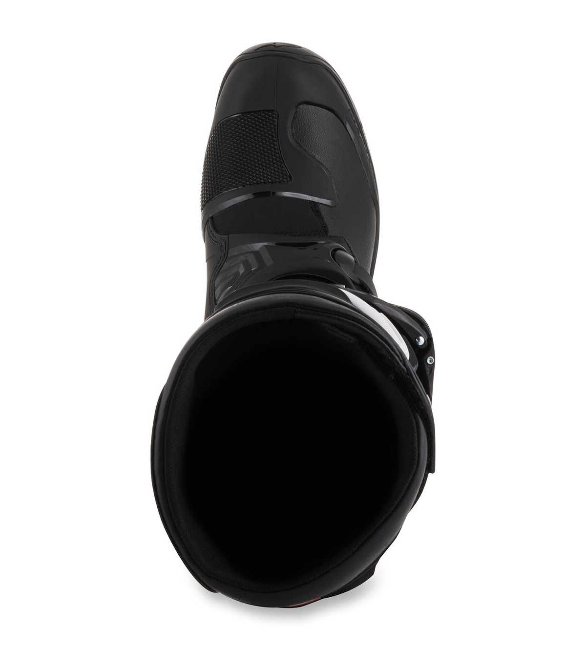 Bottes enduro Tech 3Partie supérieure de la botte fabriquée avec un matériau en microfibre novateur et léger, flexible et anti-abrasionMicrofibre légère sur les soufflets avant et arrière offrant plus de confort aux zones articuléesPointe des pieds en matériel synthétique pour une résistant à l'abrasion plus élevéeLe pourtour synthétique en polyuréthane (PU) expansé limite l’entrée d’eau et de saletésPlaque de protection du mollet en polyuréthane thermoplastique (TPU) ergonomique, plaque de protection médiane supérieure en TPU, protection latérale extérieure de la cheville en TPU et plateforme pour la cheville en TPU offrant support et résistance aux chocsPatch de pourtour arrière en TPU, appliquée à la partie supérieure de la plaque de protection du mollet pour plus de résistance et plus de confort de la zone articulée arrièreProtège-tibia en TPU injecté raccordé au panneau de protection en TPU médianScratch de fermeture supérieur de la botte avec rabat en TPR offrant un grand ajustement et supportLa protection supérieure médiane en TPU est conçue avec une texture technique pour une meilleure accrocheSystème Blade médian biomécanique permettant un bon mouvement avant/arrière de la botte tout en offrant support et résistance aux chocs à la chevilleLes triples sangles avec boucles en TPU ergonomique s’enrobent depuis la zone d’articulation avant et la protection médiane vers le côté de la botte sans entraver la flexibilité de la botteLe système de fermeture emploi trois boucles en polymère avec réglage de longueur de boucle avec un système de mémoire et un système d'attache/de détachage rapide avec une conception auto-alignanteToutes les boucles peuvent être remplacéesCoque pour le pied à double composé en TPU injecté en une seule pièce innovante, renforcée par une tige en métal à l’intérieur et par un renfort co-injecté aux doigtsUne mousse souple enveloppe les chevilles et le collier, offrant plus de confort et une meilleure performance d’absorption des chocsLa botte est totalement doublée avec du textile pour plus de confortSurface d’appui en EVA remplaçable avec doublure en tissu sur la partie supérieureLa semelle tout-terrain Alpinestars est conçue avec des composés en caoutchouc à grande adhérence ; la semelle est remplaçable