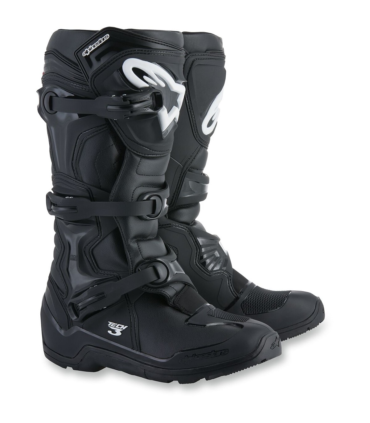 Bottes enduro Tech 3Partie supérieure de la botte fabriquée avec un matériau en microfibre novateur et léger, flexible et anti-abrasionMicrofibre légère sur les soufflets avant et arrière offrant plus de confort aux zones articuléesPointe des pieds en matériel synthétique pour une résistant à l'abrasion plus élevéeLe pourtour synthétique en polyuréthane (PU) expansé limite l’entrée d’eau et de saletésPlaque de protection du mollet en polyuréthane thermoplastique (TPU) ergonomique, plaque de protection médiane supérieure en TPU, protection latérale extérieure de la cheville en TPU et plateforme pour la cheville en TPU offrant support et résistance aux chocsPatch de pourtour arrière en TPU, appliquée à la partie supérieure de la plaque de protection du mollet pour plus de résistance et plus de confort de la zone articulée arrièreProtège-tibia en TPU injecté raccordé au panneau de protection en TPU médianScratch de fermeture supérieur de la botte avec rabat en TPR offrant un grand ajustement et supportLa protection supérieure médiane en TPU est conçue avec une texture technique pour une meilleure accrocheSystème Blade médian biomécanique permettant un bon mouvement avant/arrière de la botte tout en offrant support et résistance aux chocs à la chevilleLes triples sangles avec boucles en TPU ergonomique s’enrobent depuis la zone d’articulation avant et la protection médiane vers le côté de la botte sans entraver la flexibilité de la botteLe système de fermeture emploi trois boucles en polymère avec réglage de longueur de boucle avec un système de mémoire et un système d'attache/de détachage rapide avec une conception auto-alignanteToutes les boucles peuvent être remplacéesCoque pour le pied à double composé en TPU injecté en une seule pièce innovante, renforcée par une tige en métal à l’intérieur et par un renfort co-injecté aux doigtsUne mousse souple enveloppe les chevilles et le collier, offrant plus de confort et une meilleure performance d’absorption des chocsLa botte est totalement doublée avec du textile pour plus de confortSurface d’appui en EVA remplaçable avec doublure en tissu sur la partie supérieureLa semelle tout-terrain Alpinestars est conçue avec des composés en caoutchouc à grande adhérence ; la semelle est remplaçable