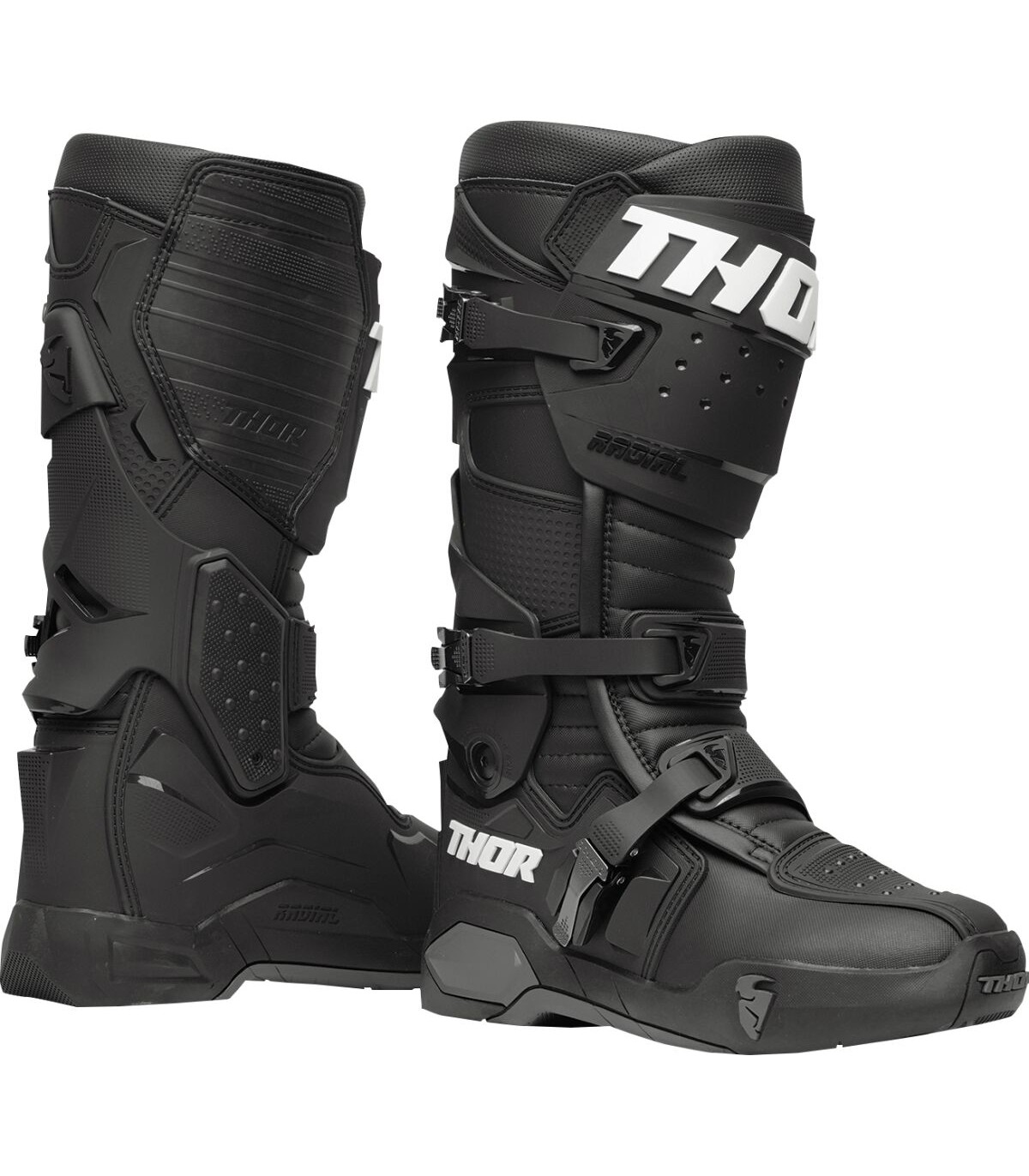 Bottes MX RadialÉléments préformés et moulés par injectionUne charnière radiale donne plus de structure et limite une extension trop importanteSystème de fermeture anti-vibrations moulé par injectionDes sangles ajustables permettent un maintien adapté et sûrPlaque médiane anti-abrasion moulée par injection avec protection sélecteur intégréePanneaux superposés entièrement synthétiques au niveau des mollets pour une grande résistance et une accroche optimalePointe des pieds adaptée à un passage de vitesse soupleSemelle extérieure unidirectionnelle renforcée d'une tige en acier pour plus de rigiditéInserts remplaçables sur la semelle extérieure pour prolonger la durée de vie de la botteDoublure respirante pour une meilleure aération et rembourrage en EVA pour plus de confort