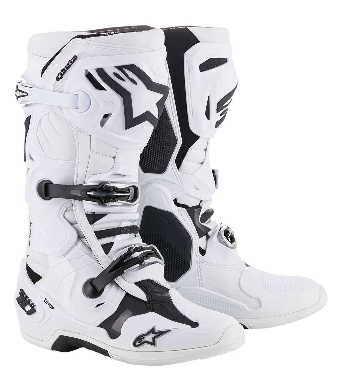 Bottes Tech 10Combine des connecteurs à dents doubles avant et arrièreAvec système de contrôle de la flexion complet et sans coutures, de la coque du pied jusqu’au protège-tibia« Flottement » libre entre la partie inférieure et la partie supérieure de la botteSystème de double pivot latéral et médian asymétrique pour une flexibilité et une précision optimisées permettant des mouvements à la fois indépendants et synchronisésSystème Blade arrière en polyuréthane thermoplastique (TPU) à double densité repensé, conçu pour éviter l’hyperextension tout en délivrant un contrôle de la flexion et une résistance aux impacts accrusProtège-talon à compression dynamique (DHCP), un accessoire de sécurité innovant qui comprend une section de talon pliable entièrement intégrée faite de mousse en polyester expansée destinée à amortir les gros chocs en cas d’accidentAvec le système de double pivot, la botte Tech 10 conserve sa forme tout en étant souple.Structure avec boucles low-profile pour une quantité de matériaux et un poids moindres et qui facilite l’enfilage des bottesLes inserts de flexion innovants sont compatibles avec le nouveau mécanisme de support flexible pour des performances ultimes.Protection en TPU et rembourrage amortissant au talon et aux chevillesFabriquée à partir d’un composé à double densité et faisant appel au système Blade arrièreLe protège-tibia à dissipation d’énergie arbore un nouveau design anatomique qui réduit la surface et le poids.La semelle exclusive à double composé est parfaitement intégrée à la structure multidensité de la base du pied par le biais du support incorporé.Les boucles minces sont munies de fermoirs résistant aux chocs forgés à froid pour plus de précision et de robustesse.Le système de verrouillage se compose d’une contre-fermeture, d’une sécurité à double fermeture et d’un système d’attache/de déverrouillage rapide auto-alignant et à mémorisation ; il assure un verrouillage simple et précis, synonyme de performances et deLes semelles et les boucles peuvent facilement être remplacées.Le châssis allie microfibre légère avancée et coque en TPU résistant à l’abrasion et aux impacts.La coque du pied regroupe sous la forme d’une pièce unique et légère cinq composés différents qui confèrent de la résistance sans nuire à la flexibilité ni à l’intégrité structurelle.Le pourtour en microfibre souple évite que trop d’eau ou de saletés ne pénètrent.La doublure en polyester avec mousse à cellules ouvertes 3D intègre du daim antidérapant au niveau du talon, afin de mieux maintenir le pied à l’intérieur de la botte.