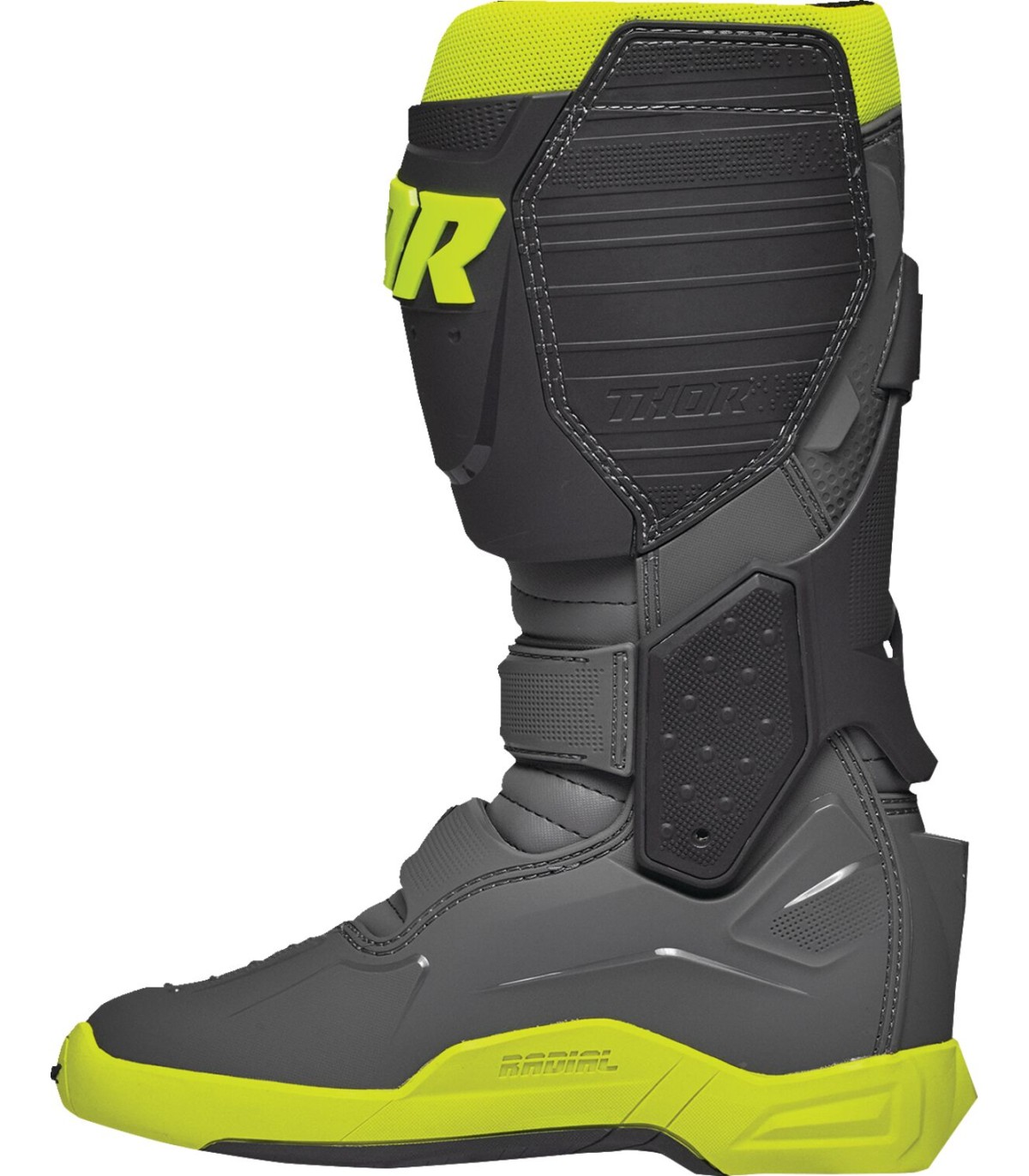 Bottes MX RadialComposants précourbés et moulés par injectionUne charnière radiale donne plus de structure et limite une extension trop importanteSystème de fermeture anti-vibrations moulé par injectionDes sangles ajustables permettent un maintien adapté et sûrPlaque médiane anti-abrasion moulée par injection avec protection sélecteur intégréePanneaux superposés entièrement synthétiques au niveau des mollets pour une grande résistance et une accroche optimalePointe des pieds adaptée à un passage de vitesse soupleSemelle extérieure unidirectionnelle renforcée d'une tige en acier pour plus de rigiditéInserts remplaçables sur la semelle extérieure pour prolonger la durée de vie de la botteDoublure respirante pour une meilleure aération et rembourrage en EVA pour plus de confort