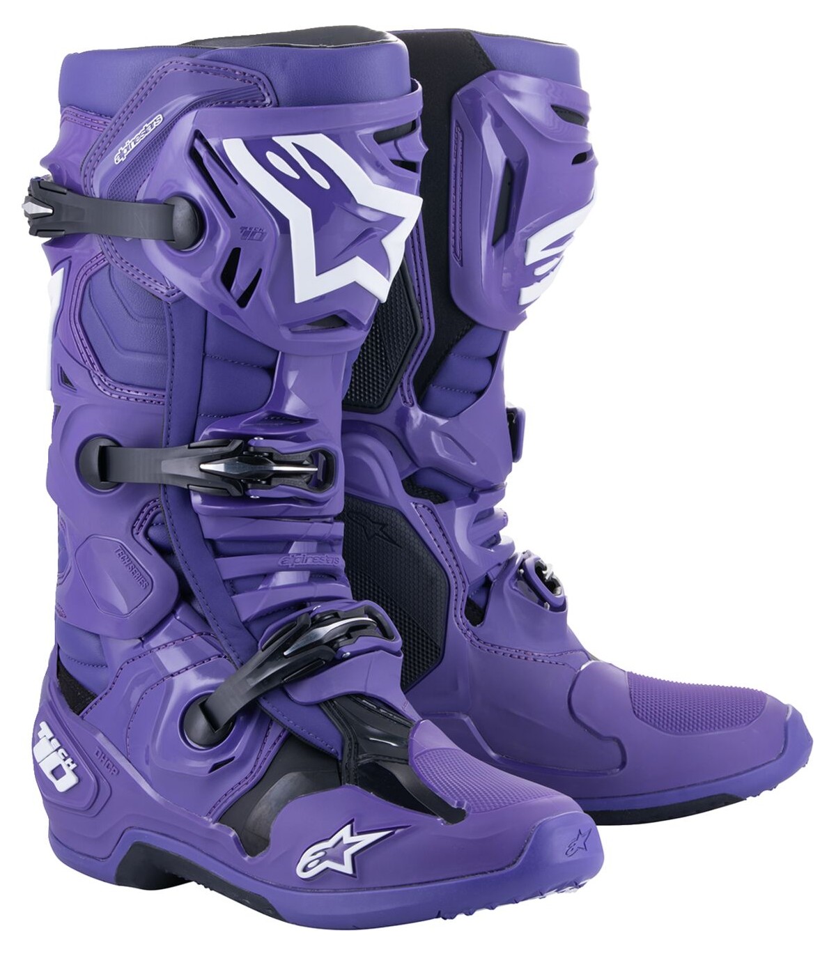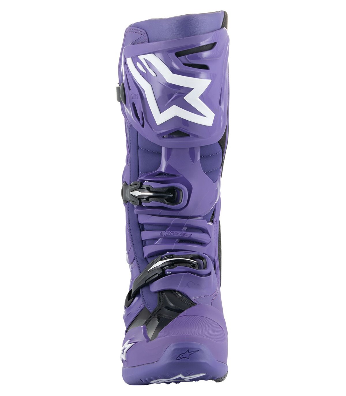 Bottes Tech 10Combine des connecteurs à dents doubles avant et arrièreAvec système de contrôle de la flexion complet et sans coutures, de la coque du pied jusqu’au protège-tibia« Flottement » libre entre la partie inférieure et la partie supérieure de la botteSystème de double pivot latéral et médian asymétrique pour une flexibilité et une précision optimisées permettant des mouvements à la fois indépendants et synchronisésSystème Blade arrière en polyuréthane thermoplastique (TPU) à double densité repensé, conçu pour éviter l’hyperextension tout en délivrant un contrôle de la flexion et une résistance aux impacts accrusProtège-talon à compression dynamique (DHCP), un accessoire de sécurité innovant qui comprend une section de talon pliable entièrement intégrée faite de mousse en polyester expansée destinée à amortir les gros chocs en cas d’accidentAvec le système de double pivot, la botte Tech 10 conserve sa forme tout en étant souple.Structure avec boucles low-profile pour une quantité de matériaux et un poids moindres et qui facilite l’enfilage des bottesLes inserts de flexion innovants sont compatibles avec le nouveau mécanisme de support flexible pour des performances ultimes.Protection en TPU et rembourrage amortissant au talon et aux chevillesFabriquée à partir d’un composé à double densité et faisant appel au système Blade arrièreLe protège-tibia à dissipation d’énergie arbore un nouveau design anatomique qui réduit la surface et le poids.La semelle exclusive à double composé est parfaitement intégrée à la structure multidensité de la base du pied par le biais du support incorporé.Les boucles minces sont munies de fermoirs résistant aux chocs forgés à froid pour plus de précision et de robustesse.Le système de verrouillage se compose d’une contre-fermeture, d’une sécurité à double fermeture et d’un système d’attache/de déverrouillage rapide auto-alignant et à mémorisation ; il assure un verrouillage simple et précis, synonyme de performances et deLes semelles et les boucles peuvent facilement être remplacées.Le châssis allie microfibre légère avancée et coque en TPU résistant à l’abrasion et aux impacts.La coque du pied regroupe sous la forme d’une pièce unique et légère cinq composés différents qui confèrent de la résistance sans nuire à la flexibilité ni à l’intégrité structurelle.Le pourtour en microfibre souple évite que trop d’eau ou de saletés ne pénètrent.La doublure en polyester avec mousse à cellules ouvertes 3D intègre du daim antidérapant au niveau du talon, afin de mieux maintenir le pied à l’intérieur de la botte.