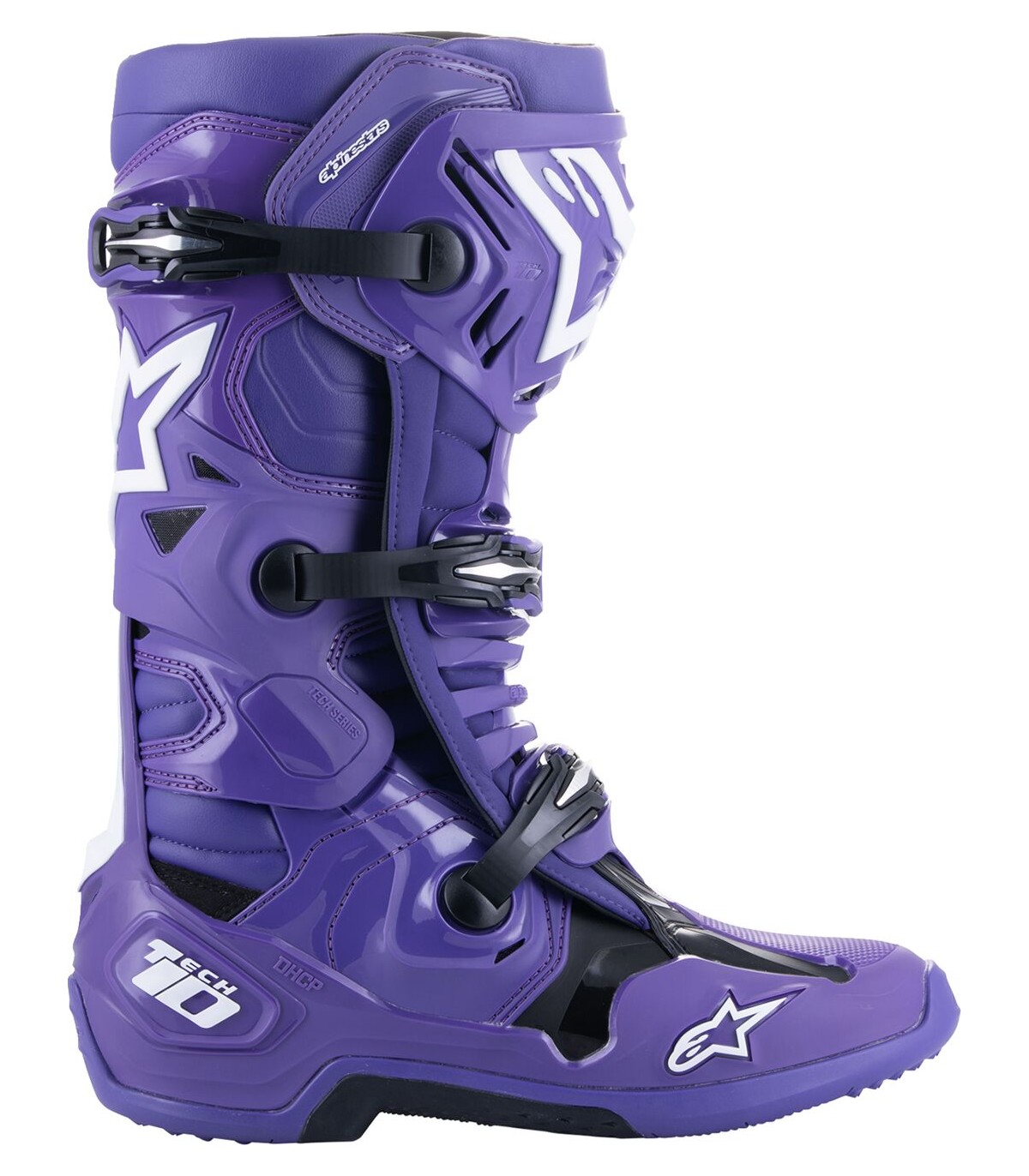 Bottes Tech 10Combine des connecteurs à dents doubles avant et arrièreAvec système de contrôle de la flexion complet et sans coutures, de la coque du pied jusqu’au protège-tibia« Flottement » libre entre la partie inférieure et la partie supérieure de la botteSystème de double pivot latéral et médian asymétrique pour une flexibilité et une précision optimisées permettant des mouvements à la fois indépendants et synchronisésSystème Blade arrière en polyuréthane thermoplastique (TPU) à double densité repensé, conçu pour éviter l’hyperextension tout en délivrant un contrôle de la flexion et une résistance aux impacts accrusProtège-talon à compression dynamique (DHCP), un accessoire de sécurité innovant qui comprend une section de talon pliable entièrement intégrée faite de mousse en polyester expansée destinée à amortir les gros chocs en cas d’accidentAvec le système de double pivot, la botte Tech 10 conserve sa forme tout en étant souple.Structure avec boucles low-profile pour une quantité de matériaux et un poids moindres et qui facilite l’enfilage des bottesLes inserts de flexion innovants sont compatibles avec le nouveau mécanisme de support flexible pour des performances ultimes.Protection en TPU et rembourrage amortissant au talon et aux chevillesFabriquée à partir d’un composé à double densité et faisant appel au système Blade arrièreLe protège-tibia à dissipation d’énergie arbore un nouveau design anatomique qui réduit la surface et le poids.La semelle exclusive à double composé est parfaitement intégrée à la structure multidensité de la base du pied par le biais du support incorporé.Les boucles minces sont munies de fermoirs résistant aux chocs forgés à froid pour plus de précision et de robustesse.Le système de verrouillage se compose d’une contre-fermeture, d’une sécurité à double fermeture et d’un système d’attache/de déverrouillage rapide auto-alignant et à mémorisation ; il assure un verrouillage simple et précis, synonyme de performances et deLes semelles et les boucles peuvent facilement être remplacées.Le châssis allie microfibre légère avancée et coque en TPU résistant à l’abrasion et aux impacts.La coque du pied regroupe sous la forme d’une pièce unique et légère cinq composés différents qui confèrent de la résistance sans nuire à la flexibilité ni à l’intégrité structurelle.Le pourtour en microfibre souple évite que trop d’eau ou de saletés ne pénètrent.La doublure en polyester avec mousse à cellules ouvertes 3D intègre du daim antidérapant au niveau du talon, afin de mieux maintenir le pied à l’intérieur de la botte.