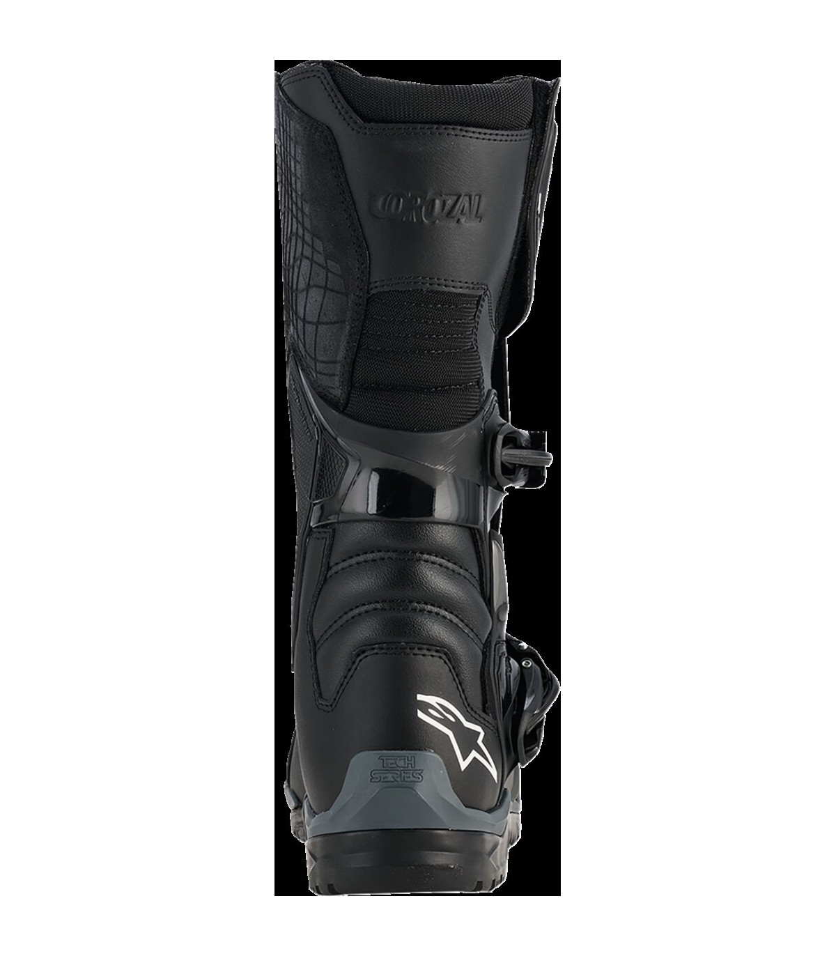 Bottes Corozal Adventure Drystar®Le dessus noir de la botte est en cuir enduit de polyuréthane (PU) avec panneau médian en daim de qualité pour une meilleure adhérenceLes soufflets à l'avant et à l'arrière de la botte sont en microfibre légère pour une durabilité et une résistance à l'abrasion accruesInsert réfléchissant arrière pour une meilleure visibilitéLe pourtour en cuir enduit de PU à l'avant permet d'éliminer l'eau et les saletésLe pourtour arrière est doté d'un insert en caoutchouc pour la flexibilité et le confortLa plaque de protection du mollet et du tibia en polyuréthane thermoplastique (TPU) offre un support et une bonne résistance aux impactsLe système de botte à lame flexible latérale bio-mécanique préserve la liberté de mouvement vers l'avant et l'arrière tout en soutenant et en protégeant la chevilleL'embout du sélecteur de vitesse en TPU présente une texture technique pour une meilleure adhérence ; la mousse au bas de l'embout du sélecteur de vitesse assure un confort accruLarge ouverture pratique avec rabat de fermeture à scratch sur le dessus permettant un réglage précis pour un ajustement parfaitProtection de cheville en TPU double densité sur la partie médianeSystème de fermeture de botte à deux boucles en polymère avec réglage de longueur à mémoire et système d'attache rapide à alignement automatique pour une fermeture facile et préciseToutes les boucles peuvent être remplacéesUne mousse souple enveloppe les chevilles et le col, offrant plus de confort et une meilleure absorption des chocsCouche de membrane Drystar® entre le dessus de la botte et la doublureRenforts de la pointe de pied et du talon sous le dessus de la botteSemelle anatomique amovible en éthyl-vinyle-acétate (EVA) avec doublure en Lycra® sur le dessusLa semelle intérieure en polypropylène (PP) avec cambrion en acier est co-injectée pour un confort et une sécurité optimumComposant en caoutchouc vulcanisé pour un confort et une adhérence maximum