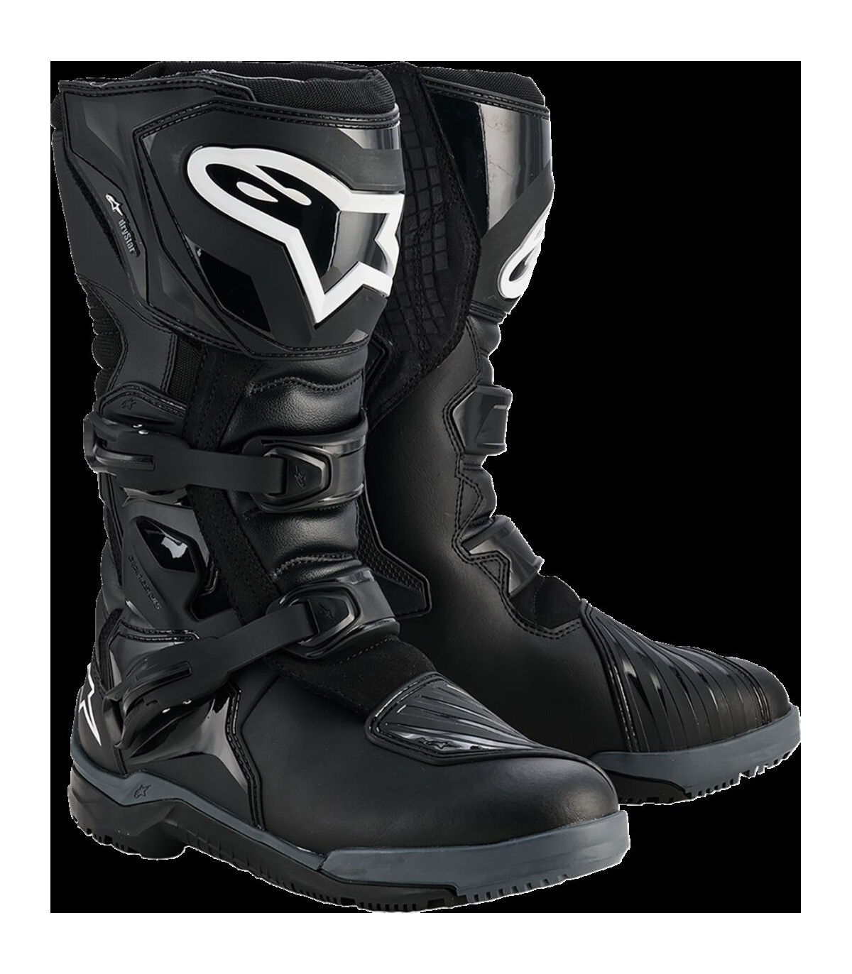 Bottes Corozal Adventure Drystar®Le dessus noir de la botte est en cuir enduit de polyuréthane (PU) avec panneau médian en daim de qualité pour une meilleure adhérenceLes soufflets à l'avant et à l'arrière de la botte sont en microfibre légère pour une durabilité et une résistance à l'abrasion accruesInsert réfléchissant arrière pour une meilleure visibilitéLe pourtour en cuir enduit de PU à l'avant permet d'éliminer l'eau et les saletésLe pourtour arrière est doté d'un insert en caoutchouc pour la flexibilité et le confortLa plaque de protection du mollet et du tibia en polyuréthane thermoplastique (TPU) offre un support et une bonne résistance aux impactsLe système de botte à lame flexible latérale bio-mécanique préserve la liberté de mouvement vers l'avant et l'arrière tout en soutenant et en protégeant la chevilleL'embout du sélecteur de vitesse en TPU présente une texture technique pour une meilleure adhérence ; la mousse au bas de l'embout du sélecteur de vitesse assure un confort accruLarge ouverture pratique avec rabat de fermeture à scratch sur le dessus permettant un réglage précis pour un ajustement parfaitProtection de cheville en TPU double densité sur la partie médianeSystème de fermeture de botte à deux boucles en polymère avec réglage de longueur à mémoire et système d'attache rapide à alignement automatique pour une fermeture facile et préciseToutes les boucles peuvent être remplacéesUne mousse souple enveloppe les chevilles et le col, offrant plus de confort et une meilleure absorption des chocsCouche de membrane Drystar® entre le dessus de la botte et la doublureRenforts de la pointe de pied et du talon sous le dessus de la botteSemelle anatomique amovible en éthyl-vinyle-acétate (EVA) avec doublure en Lycra® sur le dessusLa semelle intérieure en polypropylène (PP) avec cambrion en acier est co-injectée pour un confort et une sécurité optimumComposant en caoutchouc vulcanisé pour un confort et une adhérence maximum