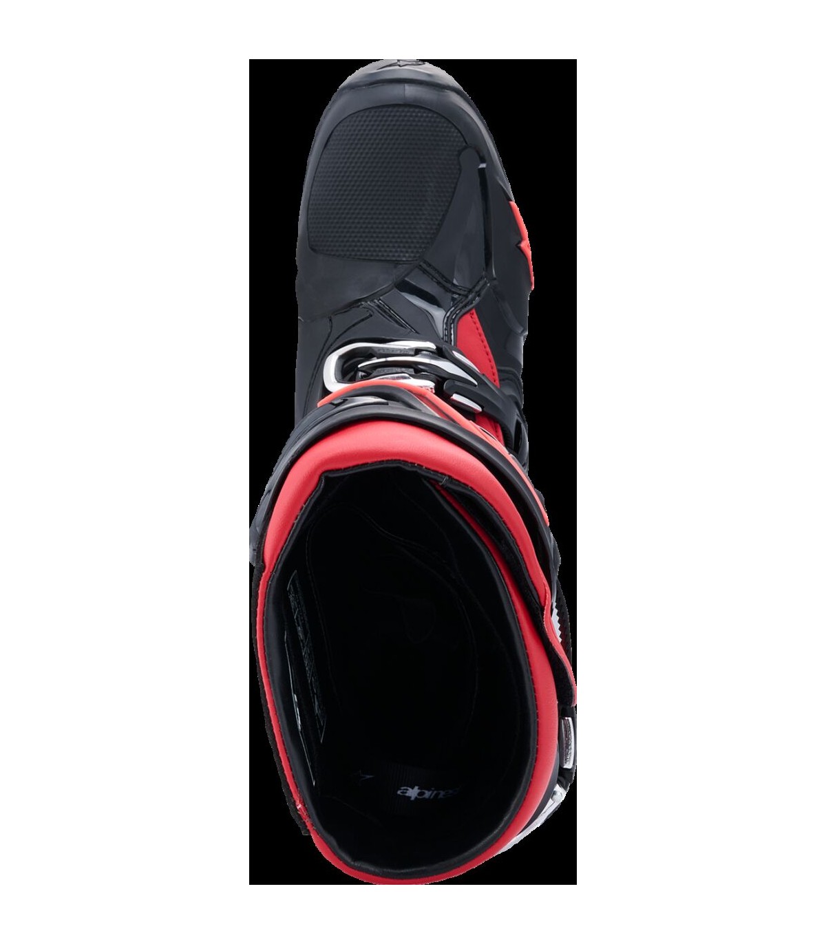 Bottes Tech 10Combine des connecteurs à dents doubles avant et arrièreAvec système de contrôle de la flexion complet et sans coutures, de la coque du pied jusqu’au protège-tibia« Flottement » libre entre la partie inférieure et la partie supérieure de la botteBras à double pivot asymétrique sur le cadre de la botteSystème de maintien de la cheville exclusif, développé sur la matière extérieure et permettant un mouvement naturel de la cheville, un contrôle de la compression verticale et une plus grande protection contre les impactsSystème de double pivot latéral et médian asymétrique pour une flexibilité et une précision optimisées permettant des mouvements à la fois indépendants et synchronisésSystème Blade arrière en polyuréthane thermoplastique (TPU) à double densité repensé, conçu pour éviter l’hyperextension tout en délivrant un contrôle de la flexion et une résistance aux impacts accrusProtège-talon à compression dynamique (DHCP), un accessoire de sécurité innovant qui comprend une section de talon pliable entièrement intégrée faite de mousse en polyester expansée destinée à amortir les gros chocs en cas d’accidentAvec bras de torsion médians et latéraux plus légers et reconçus de façon anatomiqueAvec le système de double pivot, la botte Tech 10 conserve sa forme tout en étant souple.Structure avec boucles low-profile pour une quantité de matériaux et un poids moindres et qui facilite l’enfilage des bottesLes inserts de flexion innovants sont compatibles avec le nouveau mécanisme de support flexible pour des performances ultimes.Protection en TPU et rembourrage amortissant au talon et aux chevillesFabriquée à partir d’un composé à double densité et faisant appel au système Blade arrièreLe protège-tibia à dissipation d’énergie arbore un nouveau design anatomique qui réduit la surface et le poids.Semelle entièrement repensée avec accroche sculptée brevetée qui améliore l’efficacité et l’adhérence sur le repose-pied et qui permet à la boue et à l’eau de s’écoulerLa semelle exclusive à double composé est parfaitement intégrée à la structure multidensité de la base du pied par le biais du support incorporé.Les boucles minces sont munies de fermoirs résistant aux chocs forgés à froid pour plus de précision et de robustesse.Le système de verrouillage se compose d’une contre-fermeture, d’une sécurité à double fermeture et d’un système d’attache/de déverrouillage rapide auto-alignant et à mémorisation ; il assure un verrouillage simple et précis, synonyme de performances et deLes semelles et les boucles peuvent facilement être remplacées.Le châssis allie microfibre légère avancée et coque en TPU résistant à l’abrasion et aux impacts.La coque du pied regroupe sous la forme d’une pièce unique et légère cinq composés différents qui confèrent de la résistance sans nuire à la flexibilité ni à l’intégrité structurelle.Le pourtour en microfibre souple évite que trop d’eau ou de saletés ne pénètrent.La doublure en polyester avec mousse à cellules ouvertes 3D intègre du daim antidérapant au niveau du talon, afin de mieux maintenir le pied à l’intérieur de la botte.